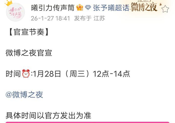 张予曦已确定参加微博之夜 又可以看到美曦了!