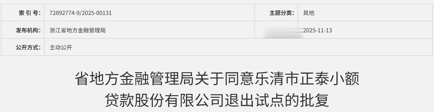通利咨询前身为乐清市正泰小额贷款股份有限公司(以下简称“正泰小贷”),为浙江省仅有的几张网络小贷牌照之一,同样已于去年11月刚退出小额贷款试点,并退出小贷行业。