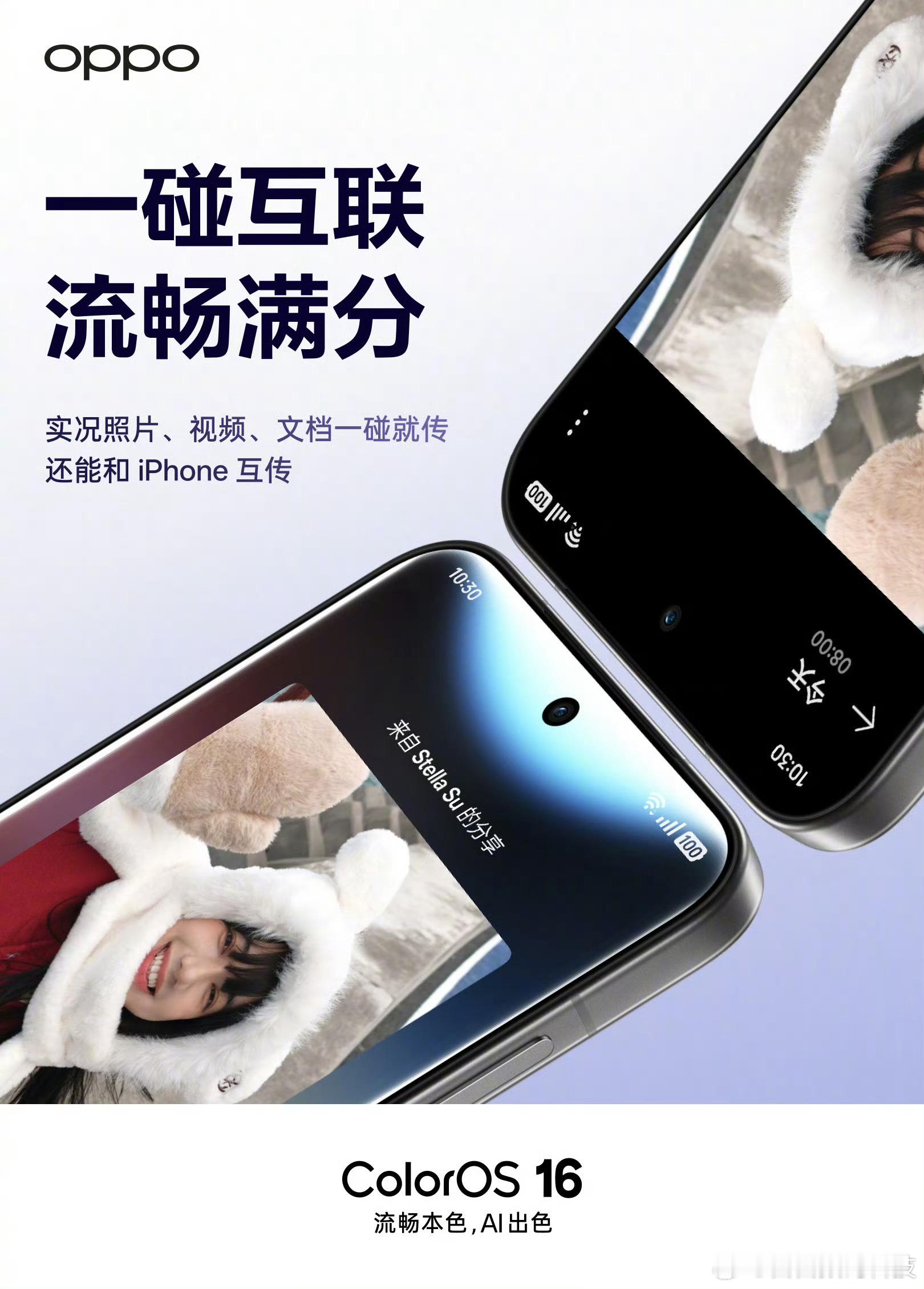 ColorOS 16 一碰互联,各类文件都能一碰即达,还支持与 iPhone 一碰互传。