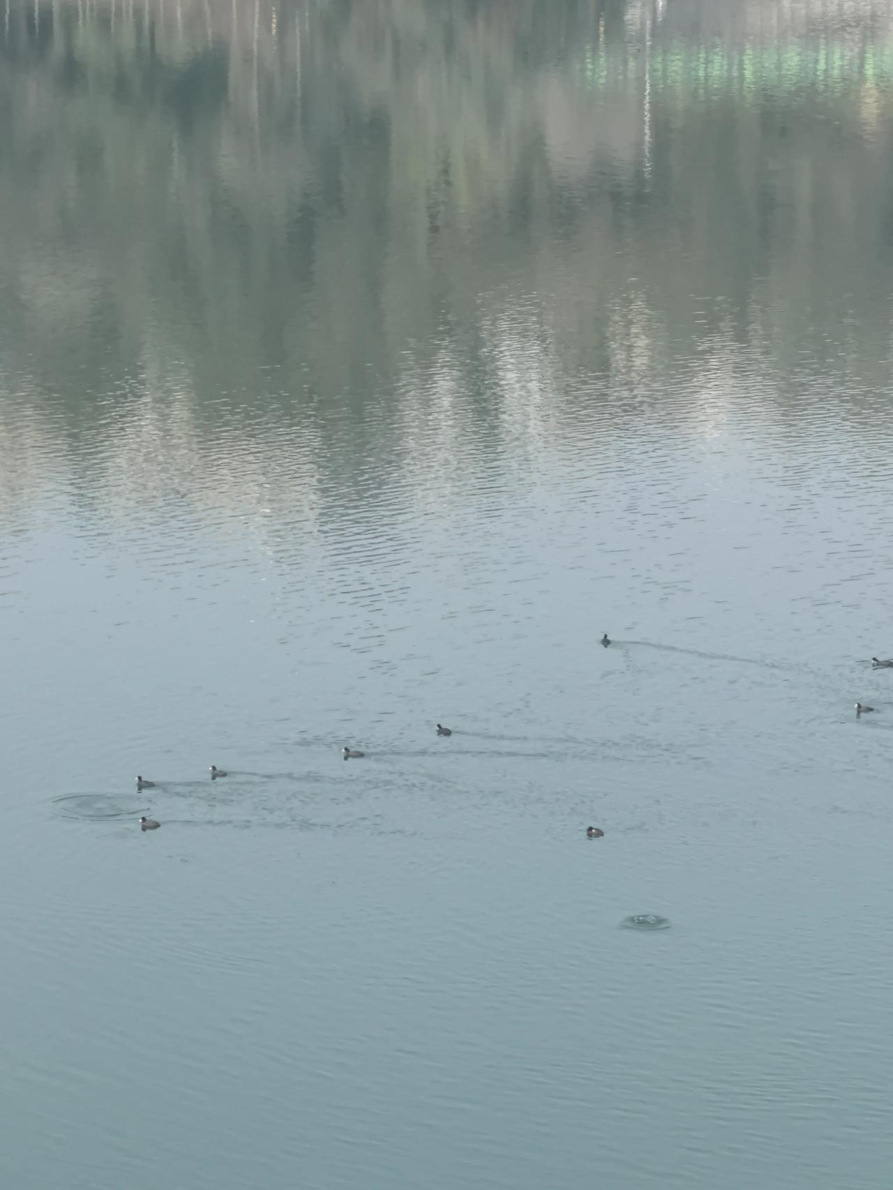 冬日生活打卡季春江水暖鸭先知,看这一群惬意的野鸭子游来游去,难道汉江的水暖了不成!