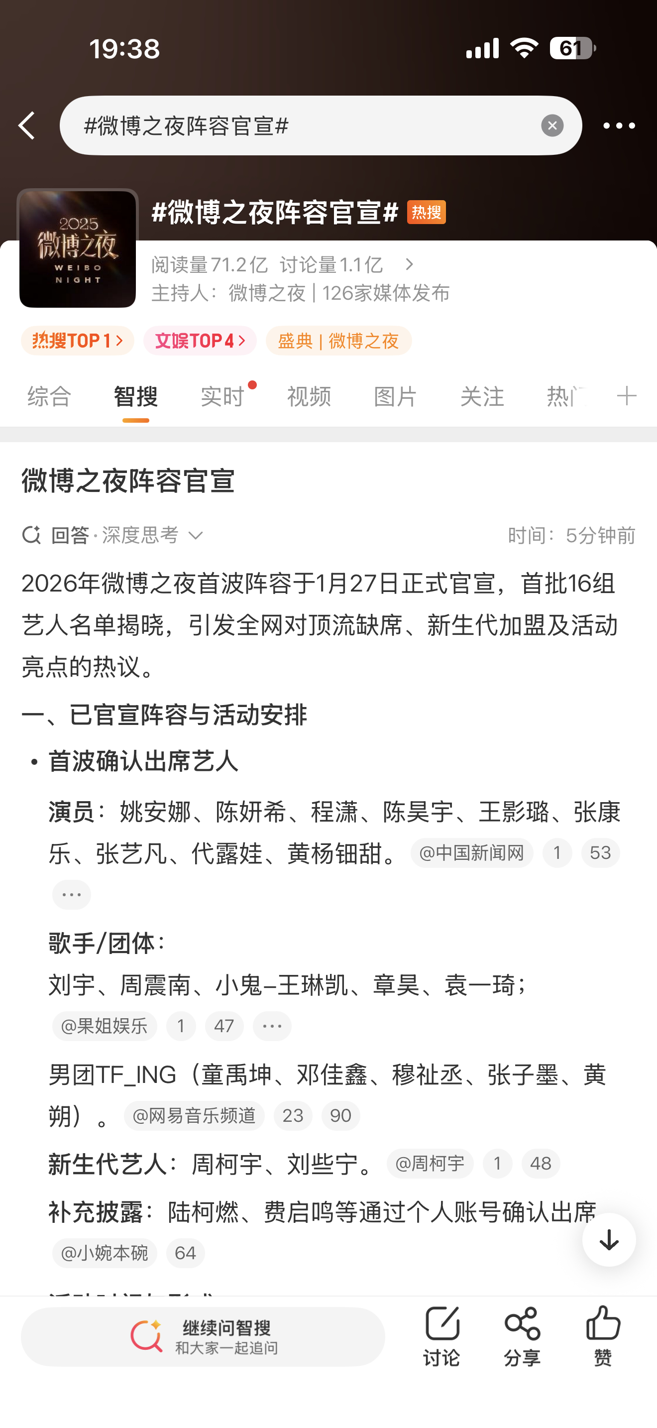 微博之夜阵容官宣总结:顶流缺席,新生代加盟