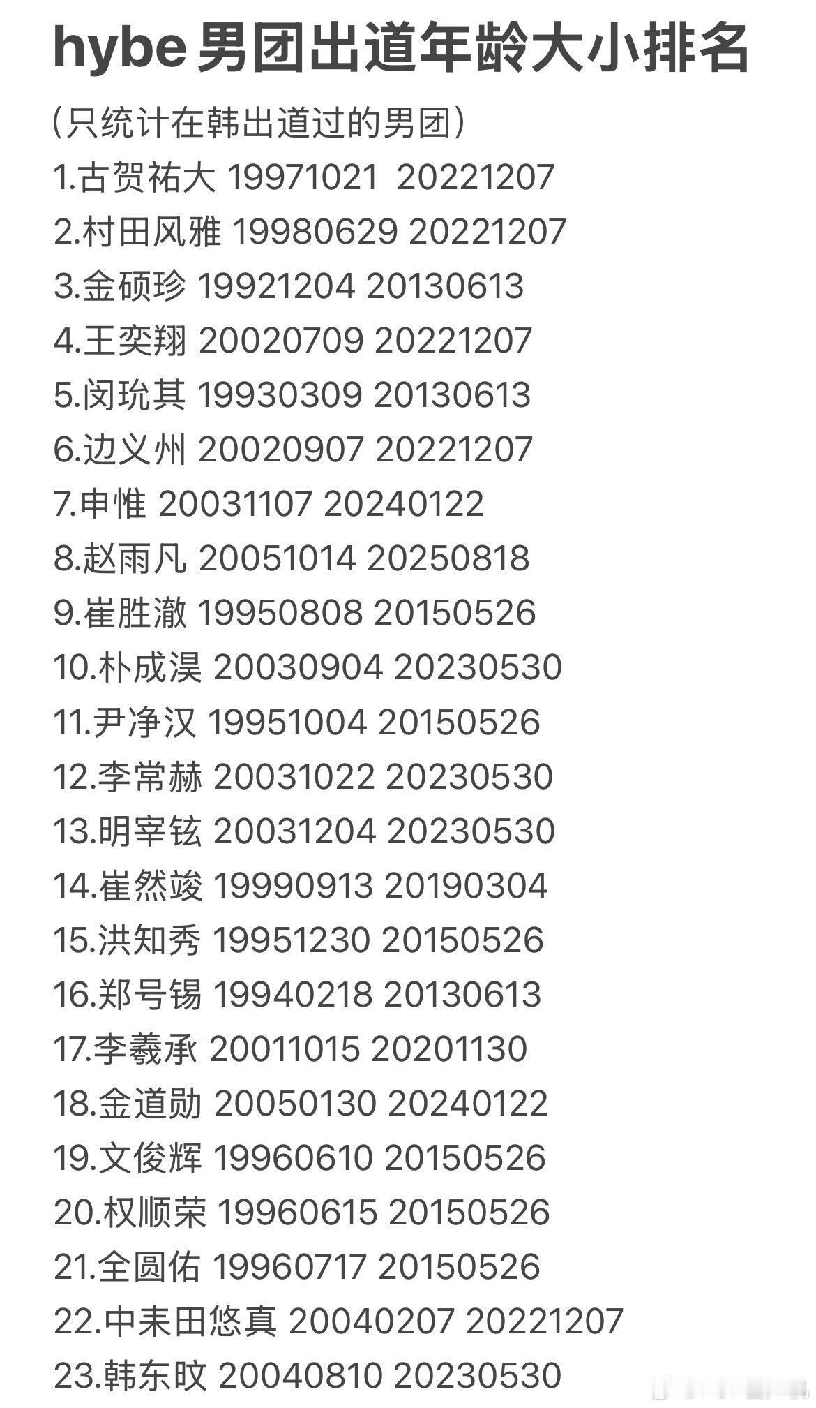 hybe男爱豆年龄统计