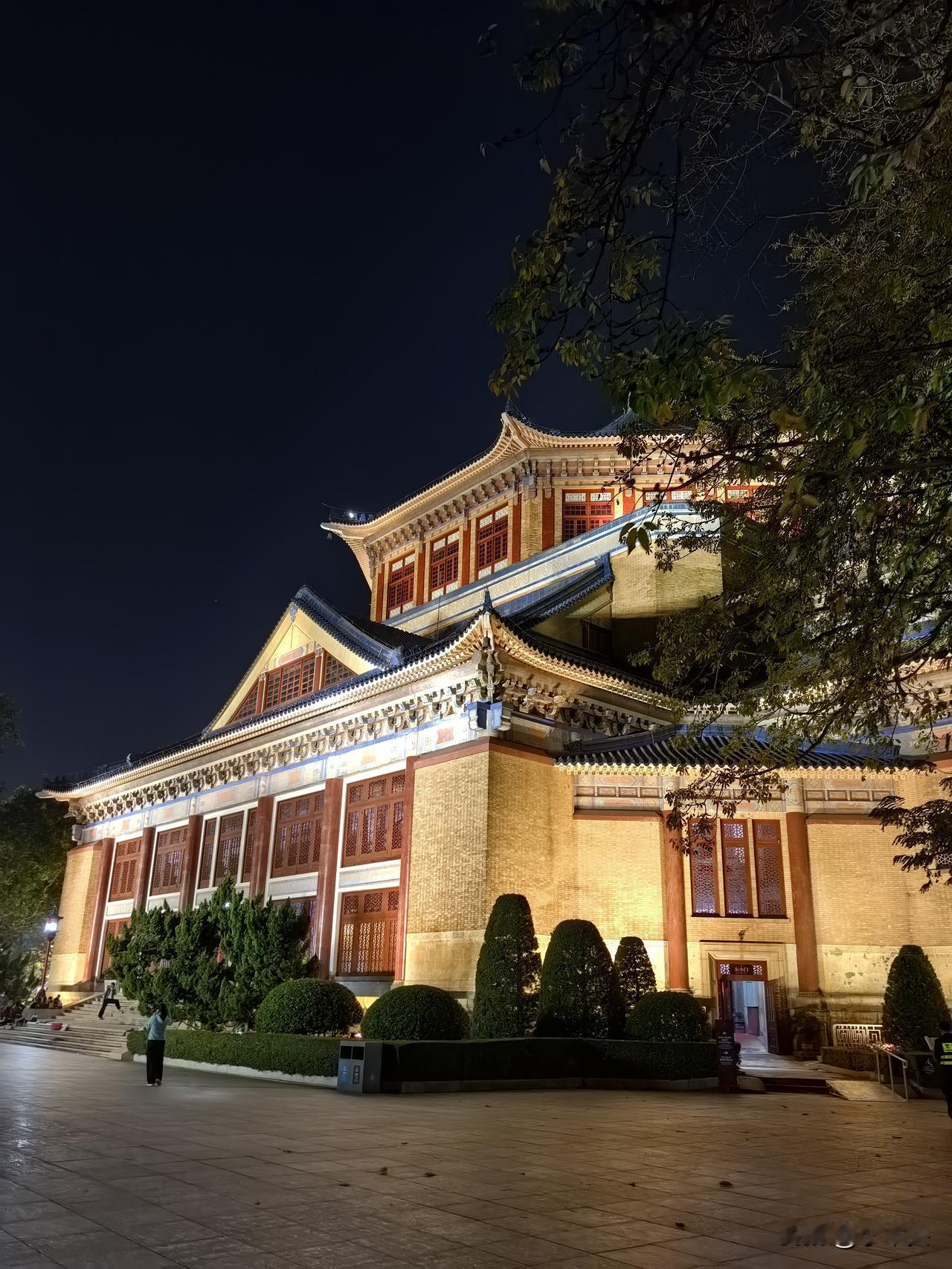 晚饭后,在中山纪念堂走了一圈。 夜色中的建筑静默肃立,暖光沿着飞檐轮廓流淌。晚风擦过榕树的气根,把白天的喧哗轻轻拂散成地上的碎影。绕着走,步子不自觉就慢了——好像时光在这里也收起了急促的呼吸。 想起设计师曾说,这八角形屋檐是为让每个方向都能看见希望。此刻无论从哪边抬头,檐角都稳稳托着深蓝的夜空。 真好,有些东西历经年月,依然能让人站定看一会儿。