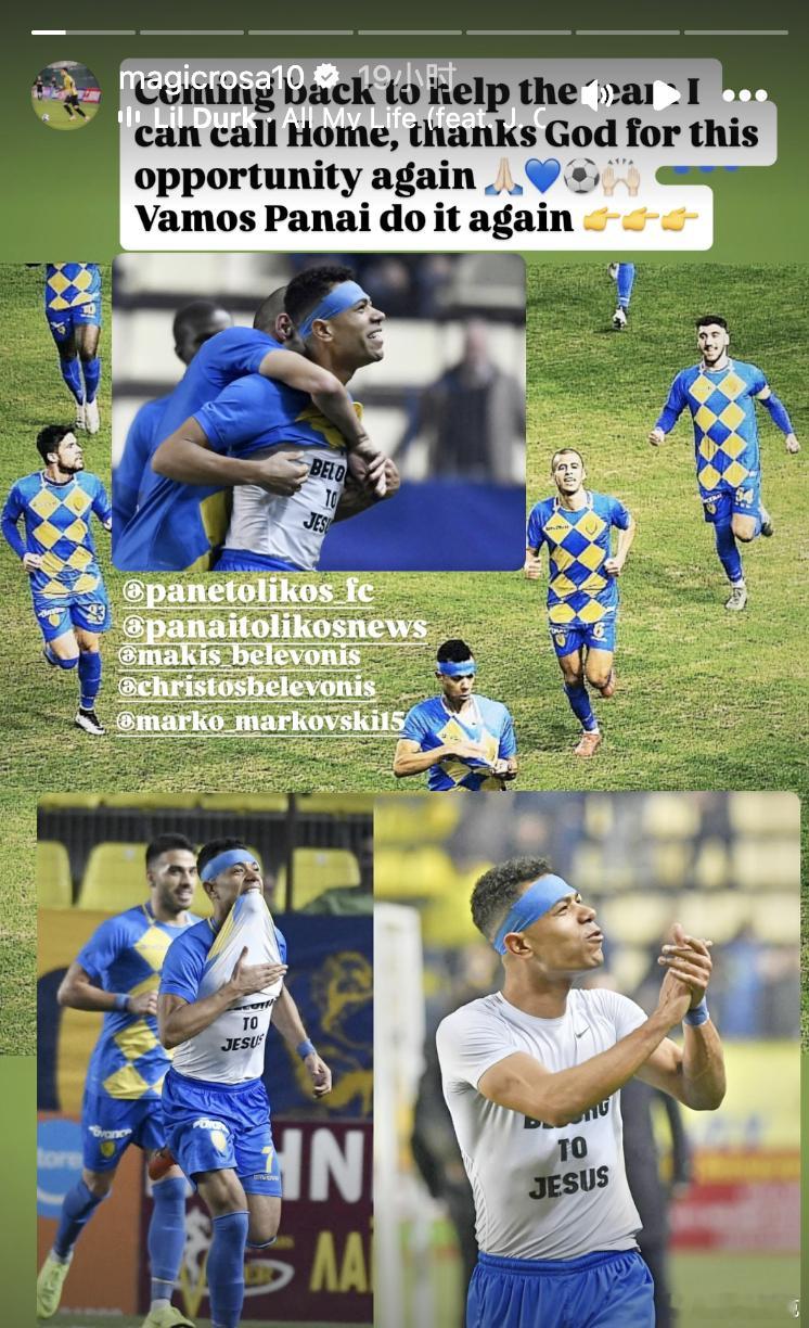 老罗萨发布社交媒体,并转发了多个社媒。似乎老罗萨是要回归希腊超帕纳托利克斯。2020年,罗萨曾在此队效力半年。因为当时口罩的缘故,比赛基本都集中在了6、7两个月进行。随后罗萨去往阿联酋和以色列,都大约是半年的效力。2022年4月来到天津津门虎,2023年年末离队。当然,2016年~2018年,罗萨也在帕纳托利克斯效力,这才是他第一次来到这支球队。罗萨的职业生涯曾两次效力该队,累计出场74次,是除了在津门虎外效力场次最多的球队。如果回归成功,祝老罗萨一切顺利~