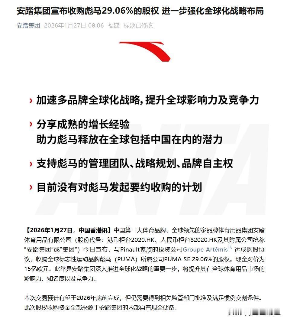 今天刷手机,看到安踏123亿买下彪马股权的新闻,直接给我看懵了!好家伙,安踏这是