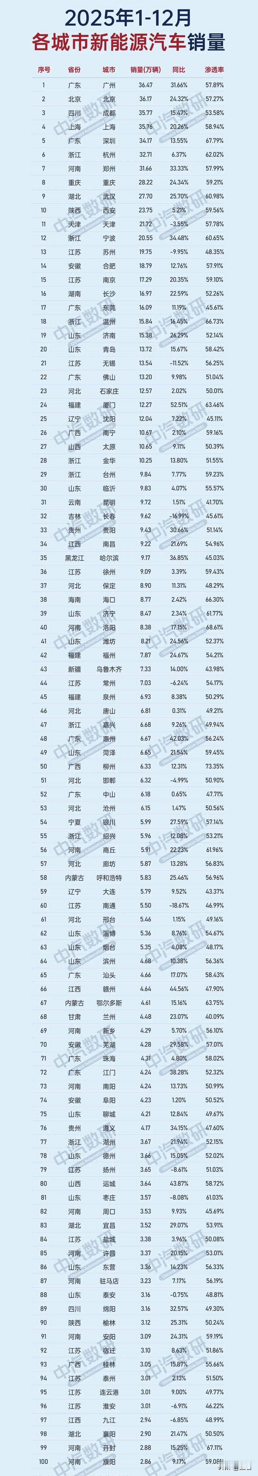哪些城市偏爱新能源汽车? 北上广深成都杭州都是新能源汽车消费主导市场,新能源车销售占比都超过燃油汽车。其实除了新能源汽车这些年进步很大以外,省钱和不限号是最重要的原因,而且这样的用户一般家里都不止一辆汽车。 另外,网约车占新能源销量比十分高,比亚迪、埃安、吉列银河等作为网约车相对燃油汽车性价比是相当高的。 当然,从整体来看,咱们新能源汽车的推广是相当彻底和成功的,这跟咱们是产业战略相关,下一步将是走出海外的战略落实阶段。这是与传统燃油车真正展开较量的关键一步,海外他国可是没有各种“补贴”的,而且对于安全和技术的要求会更高,可不能以对待国人的方式“忽悠”他国用户了,毕竟人家罚起款来那是真的重罚。
