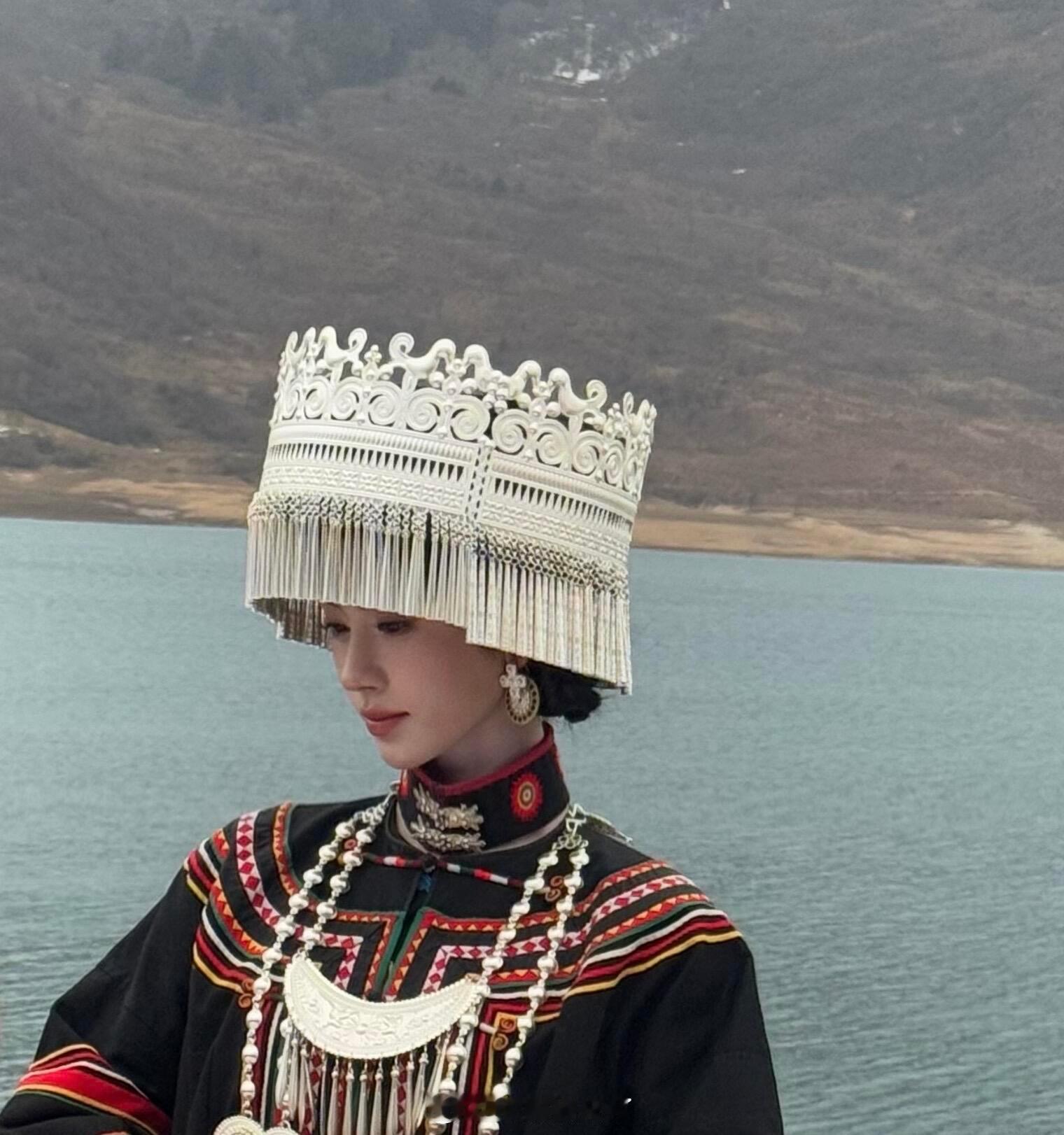 网友在冶勒湖偶遇鞠婧祎穿着民族服饰好美啊是在拍文旅宣传吗?