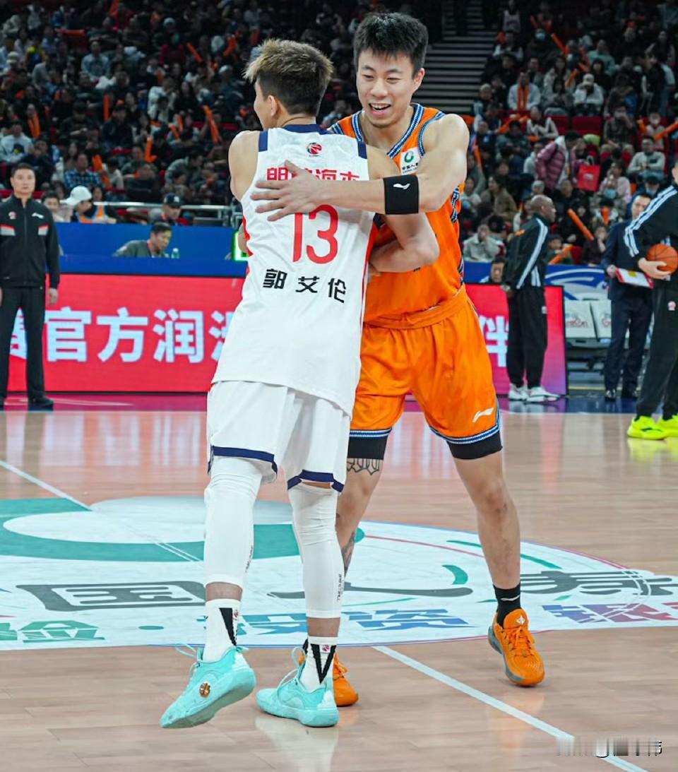 让人动容!张镇麟谈郭艾伦: “见到伦哥真的特别开心。” “他前面的比赛我看了。” “表现真的非常出色。” “还是我们熟悉的那个伦哥。” “希望他能够健康打球。” “远离伤病。” 赛前,张镇麟和郭艾伦拥抱致意,二人笑得非常开心! 曾经一起在辽篮并肩作战,如今一个在广州队,一个在上海队! 不过,不管在哪里,郭艾伦都是张镇麟尊重的老大哥! 艾伦今天轮休,教练也是为了保护艾伦! 少了艾伦的广州队,前面打得不错,后面还是被上海队拉开分差,最终输掉比赛! 看到艾伦和张镇麟的拥抱,确实是让人动容! 这个画面非常温馨,是球迷所希望看到的! 郭艾伦