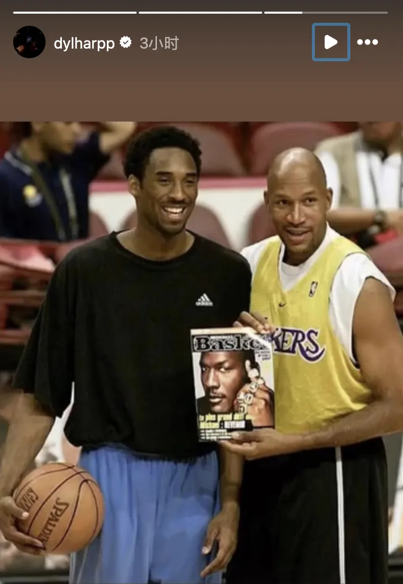 缅怀伟大!马刺球员迪伦-哈珀更新Ins,晒出一张父亲和科比-布莱恩特的合影与球迷分享。科比KobeBryant科比去世六周年
