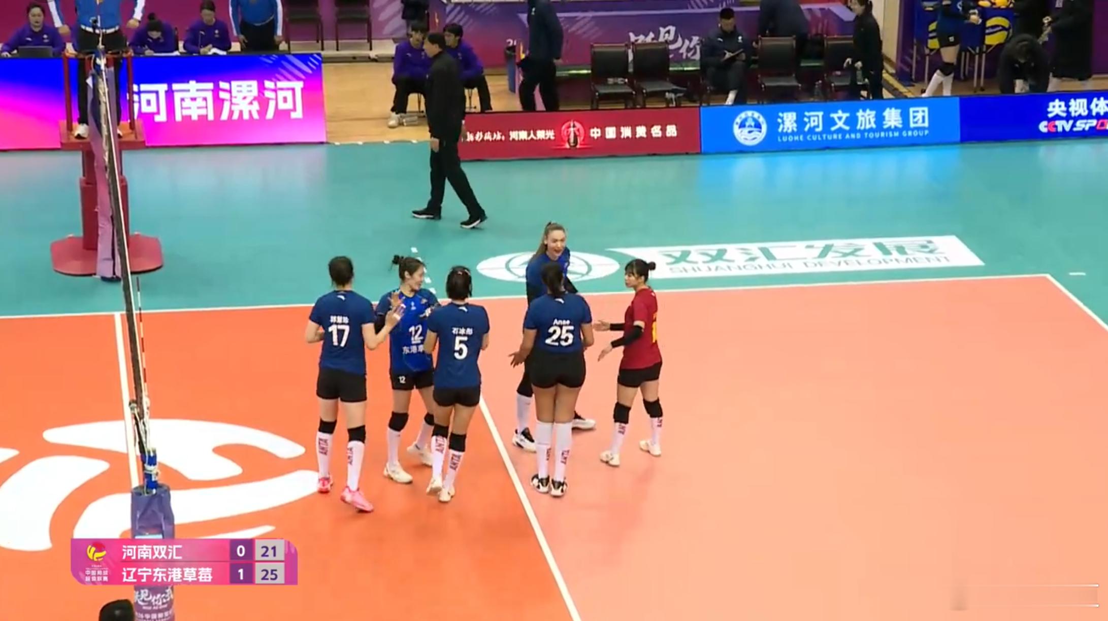排超联赛2025-2026中国排球超级联赛女排常规赛A级第12轮比赛,前两局:河南双汇0-2(23-25/21-25)辽宁东港草莓。我辽一度16-18落后,数次失配和小品球,有种提前看辽宁春晚的感觉,但最后逆转再赢一局。暂停的时候,李海运指导和郭慧珍、郑茗予一顿输出