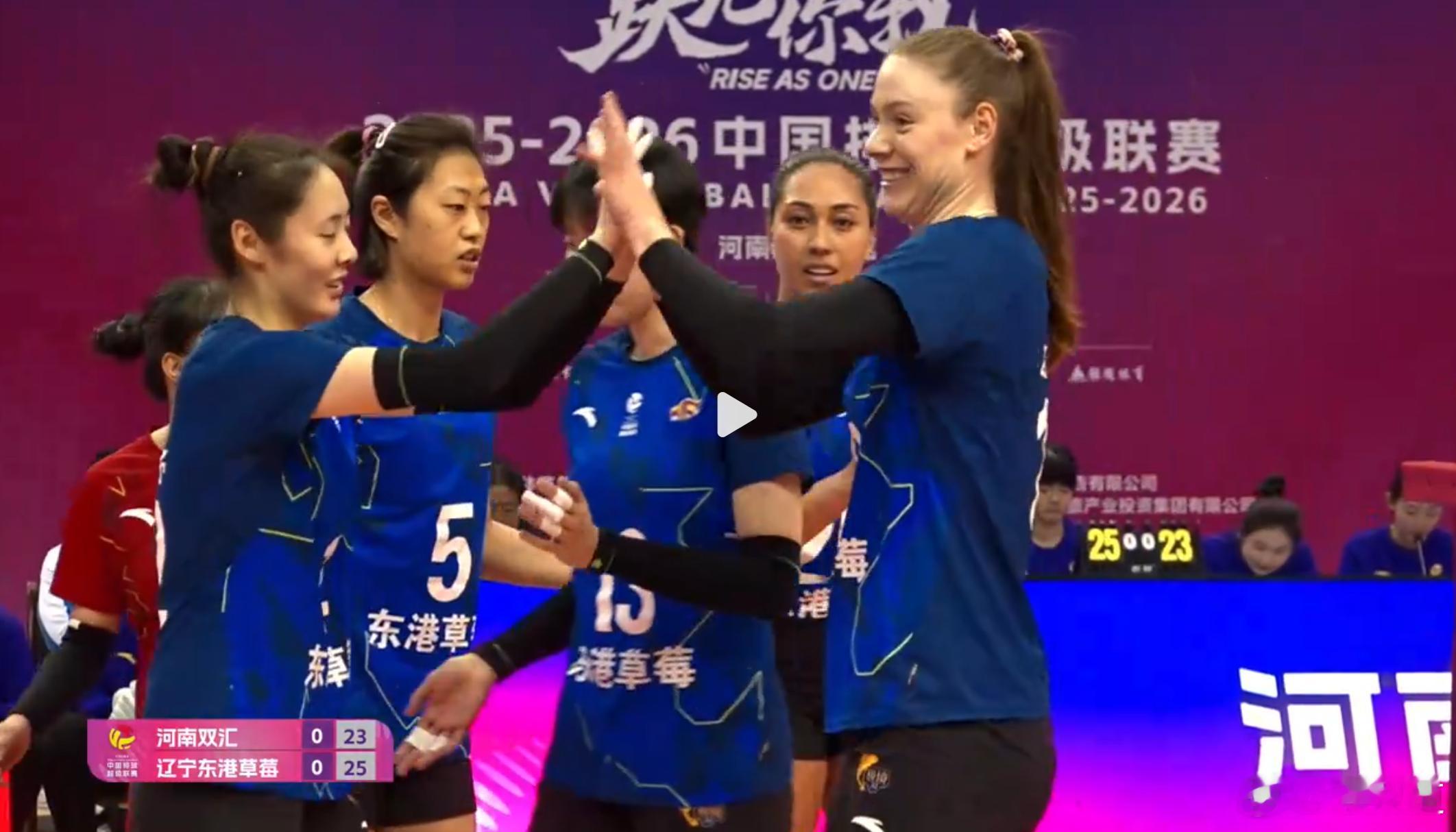 排超联赛2025-2026中国排球超级联赛好的开始是成功的一半 女排常规赛A级第12轮比赛,第一局:河南双汇23-25辽宁东港草莓。