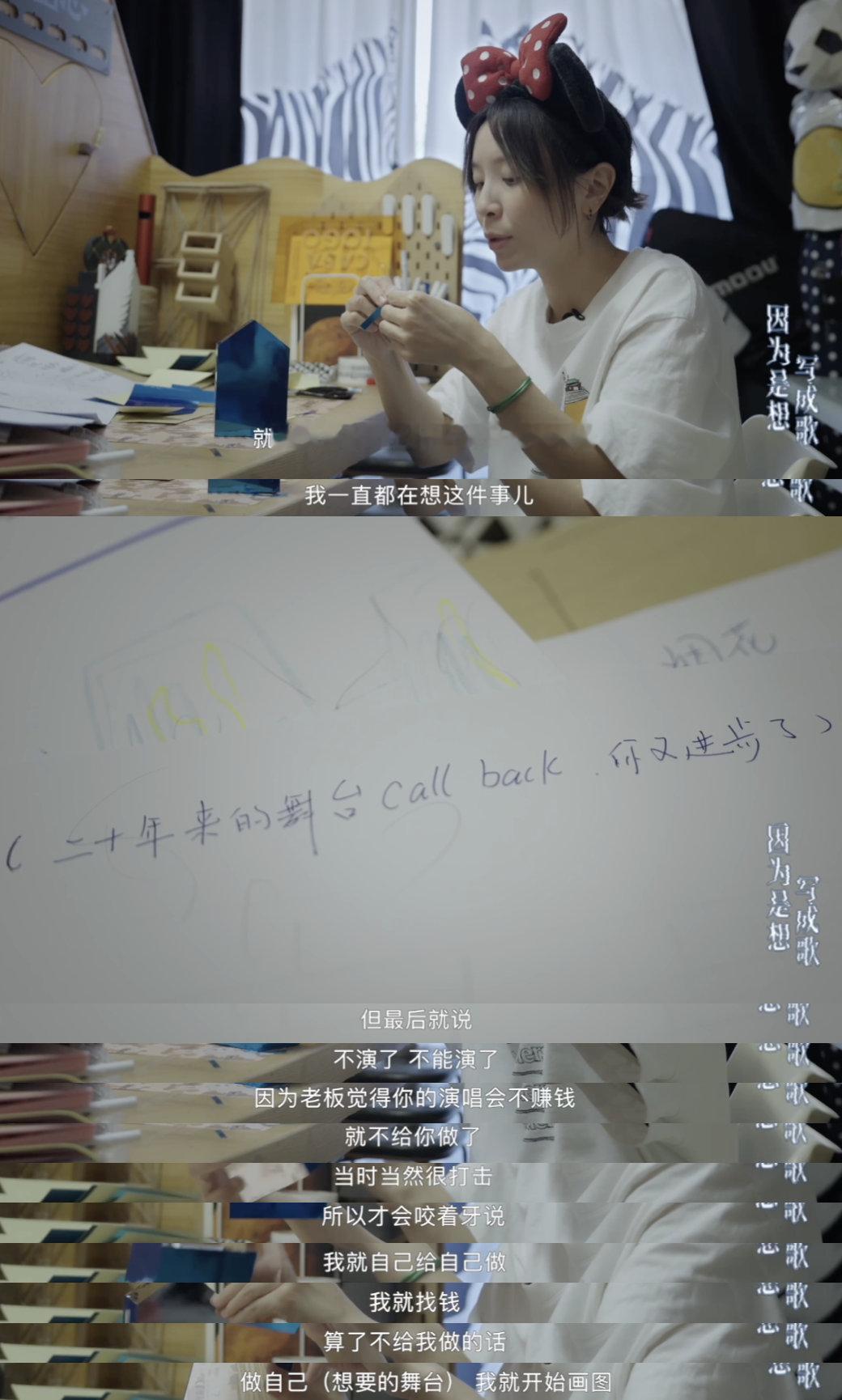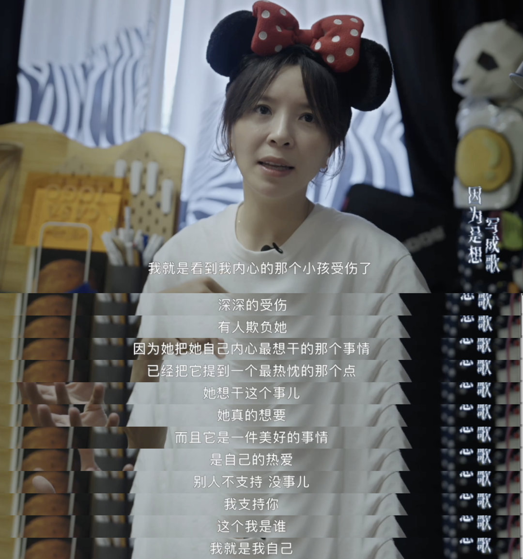 黄雅莉想守护内心的小孩因为是想写成歌 十二年的等待,用全部存款赌一个梦想。当公司放弃时,她看到了“内心的小孩受伤了”。于是她决定:别人不支持,我自己支持。黄雅莉用行动守护了心里那个不愿长大的创作者。