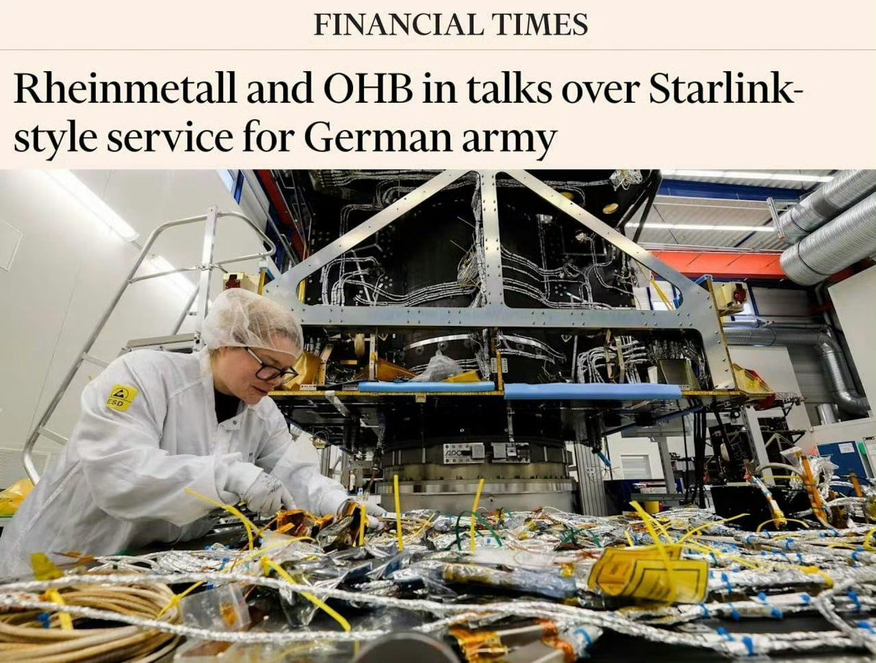 据《金融时报》报道,莱茵金属公司和德国奥匈帝国航空航天工业公司(OHB)正在探讨合作开发德国版“星链”(Starlink)卫星通信系统的可能性。国际局势海外新鲜事热点现场