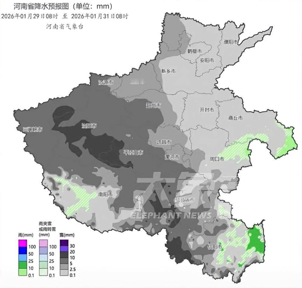河南第二场雪要来了,预报显示1月29号到31号三天河南再次迎来雨雪天气。 上场雪还没完全融化,气温刚回升两天,第二场雨雪又来临,四九气节正是一年最冷的时候,刚回升的气温在这场雨雪后会再次下降。 此次雨雪全省地区都会出现,29号开始雨雪大风加降温,局部积雪可达12厘米。河南第二轮降雪