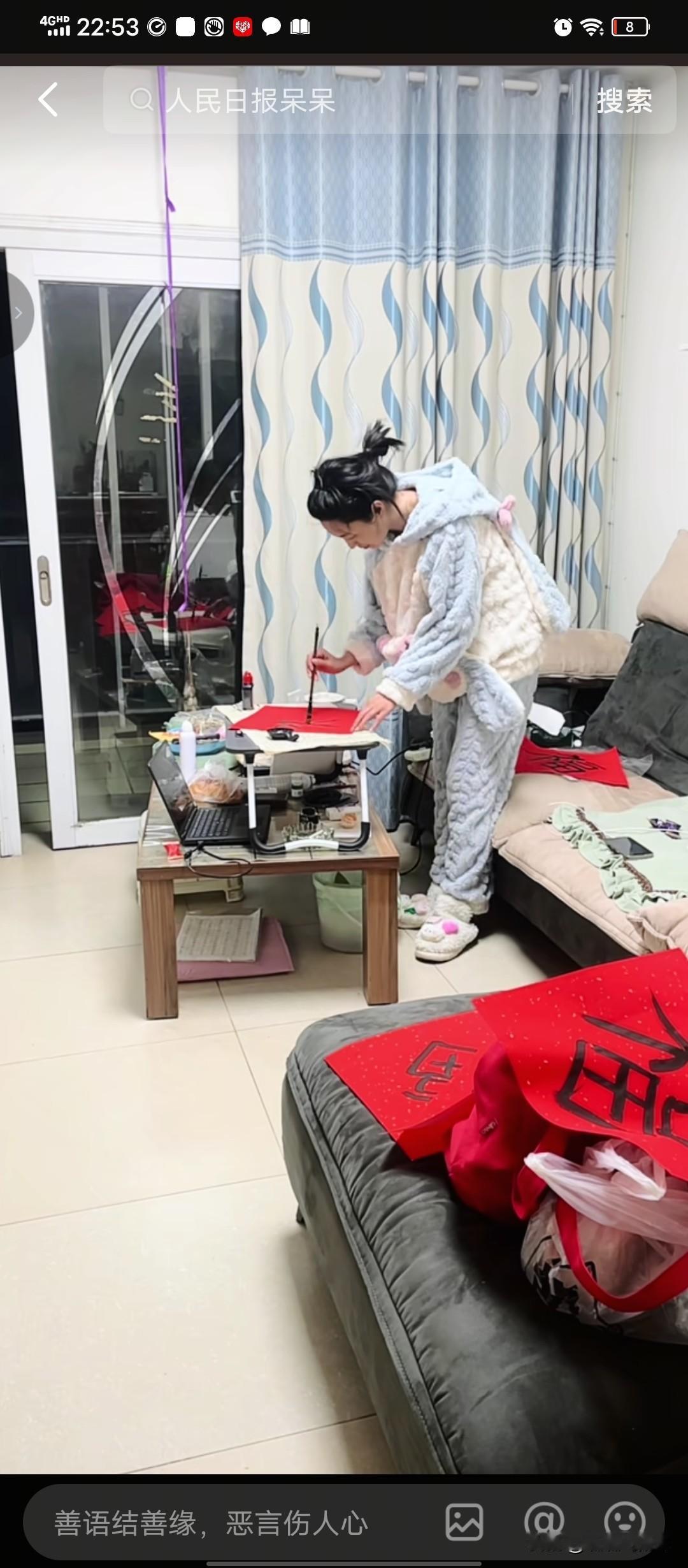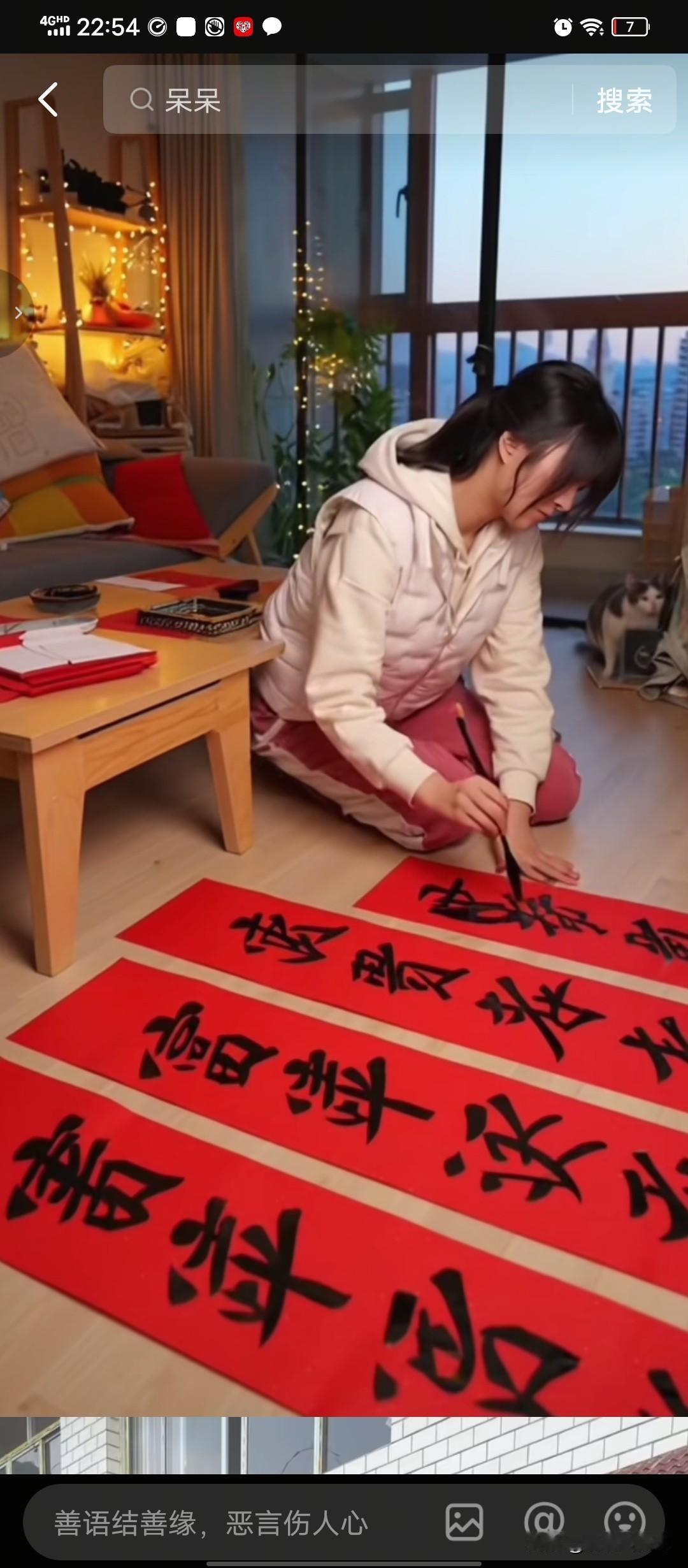 不知道是呆呆的主意,还是哪位高人的建议,呆呆发起免费送春联活动 。 春联不但免费送,而且送出的春联是呆呆本人亲自书写 。 书写春联的时候全程直播 。 春联的内容呆呆在网上发起征集 。 网友们乐坏了,纷纷发挥自己的才能,献上自己创作的希望呆呆采用的春联 。 呆呆从万千网友献上的春联中选上了三幅最满意的春联 。 第一幅 呆萌迎春 上联:呆呆萌萌会猪友 下联:快快乐乐迎马年 第二幅 呆乐马安 上联:你呆我呆大家呆 下联:国安民安家庭安 第三幅 马到成功 上联:呆呆萌萌福气到 下联:乐乐呵呵好运来 呆呆说会在主页中告知直播写春联的时间。 春节是中国人民的传统佳节 。春节家家户户都会贴春联 , 呆呆发起这个免费送亲笔春联活动,无疑有趣又喜庆。 有网友说杀猪宴后没有才艺的呆呆很快就会凉下去,我看呆呆想不火都不行, 因为她的想法跟很多网红不一样 ,她总能想出有趣好玩的 事情来 。 只是要春联的网友太多,呆呆能写得过来吗 ?