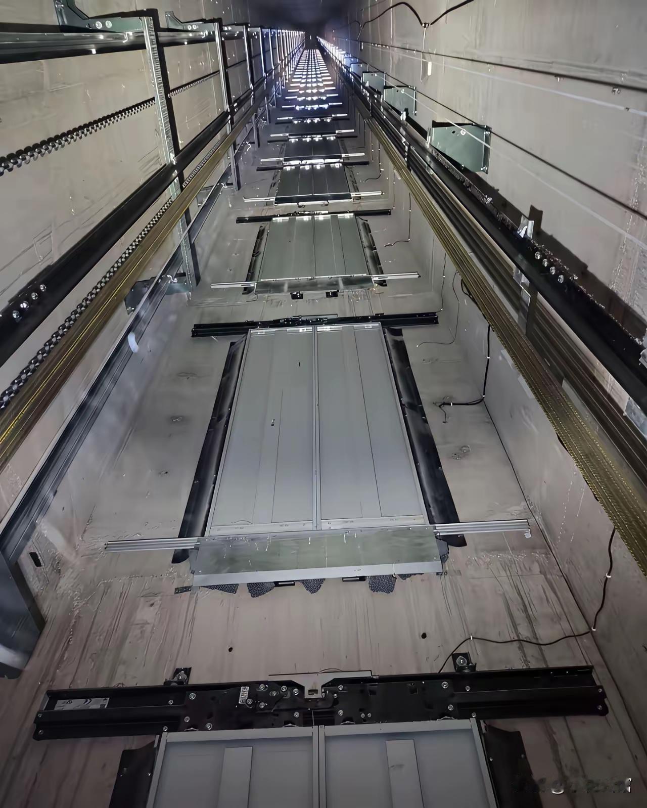 我们日常看到的电梯门只是一道普普通通的门。真实的电梯门是这样子的。重视电梯门很有必要,安全第一。