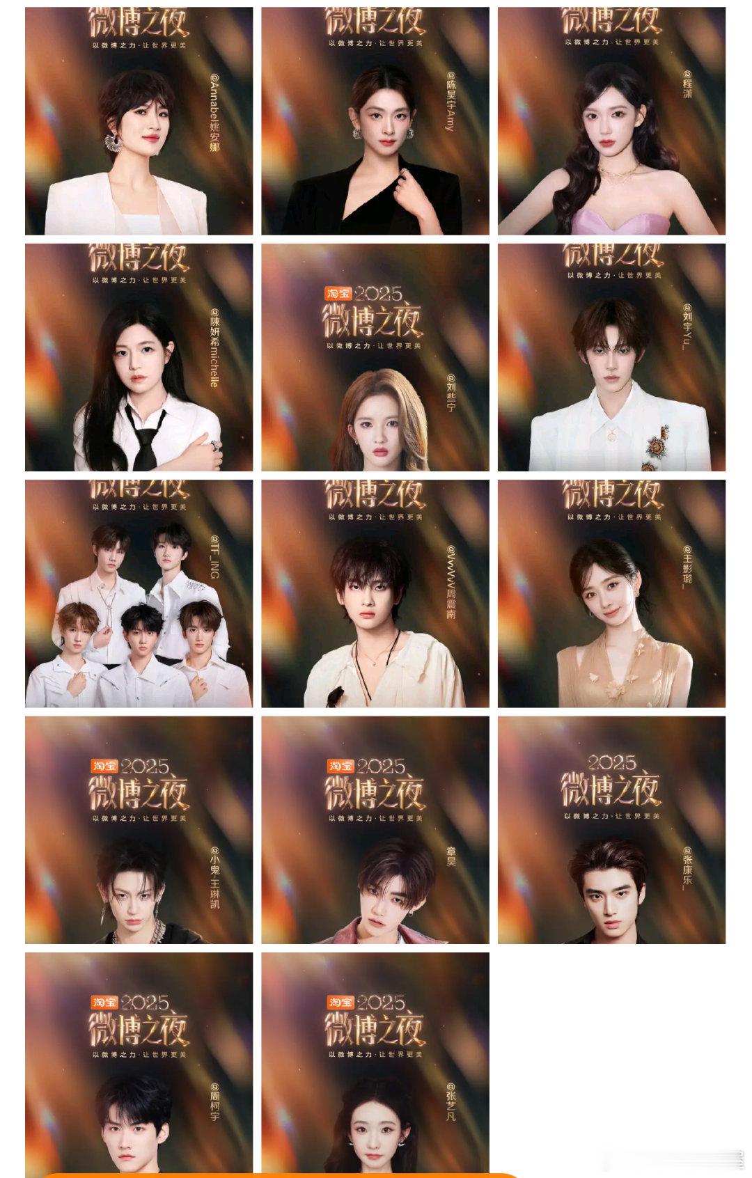 瓜主说王一博会去今年的微博之夜,其他的不清楚目前已经官宣了微博之夜首批阵容和第二