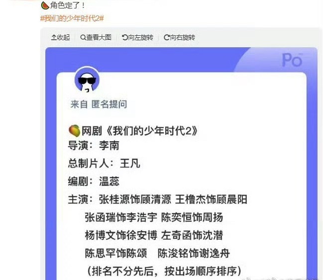 网剧我们的少年时代2角色名单🈶张桂源饰顾清源 王橹杰饰顾晨阳张函瑞饰李浩宇 陈奕恒饰周扬杨博文饰徐安博 左奇函饰沈潜陈思罕饰陈颂 陈浚铭饰谢逸舟