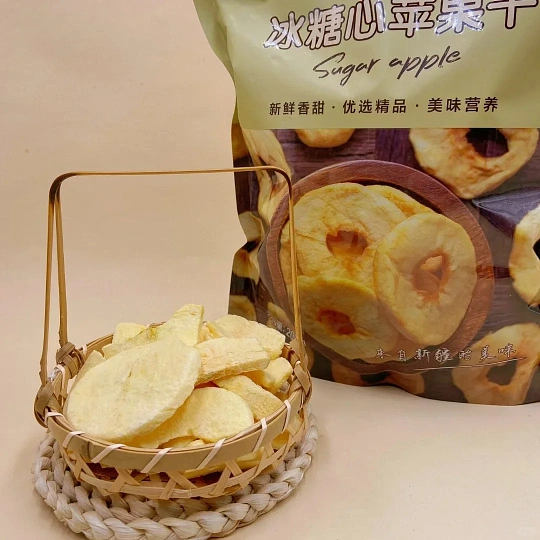 零食界的苹果“零食界的苹果”通常指苹果干、苹果脆片这类以苹果为原料的零食,它们像水果界的苹果一样普适、健康、百搭,配料表干净,通常只有苹果,无添加糖、香精和防腐剂,富含膳食纤维,低热量却很解馋,口感上苹果干酸甜软糯有嚼劲,苹果脆片则酥脆爽口、保留原汁原味,还便于携带和储存,不怕磕碰氧化,适合通勤、加班、旅行等多种场景食用。