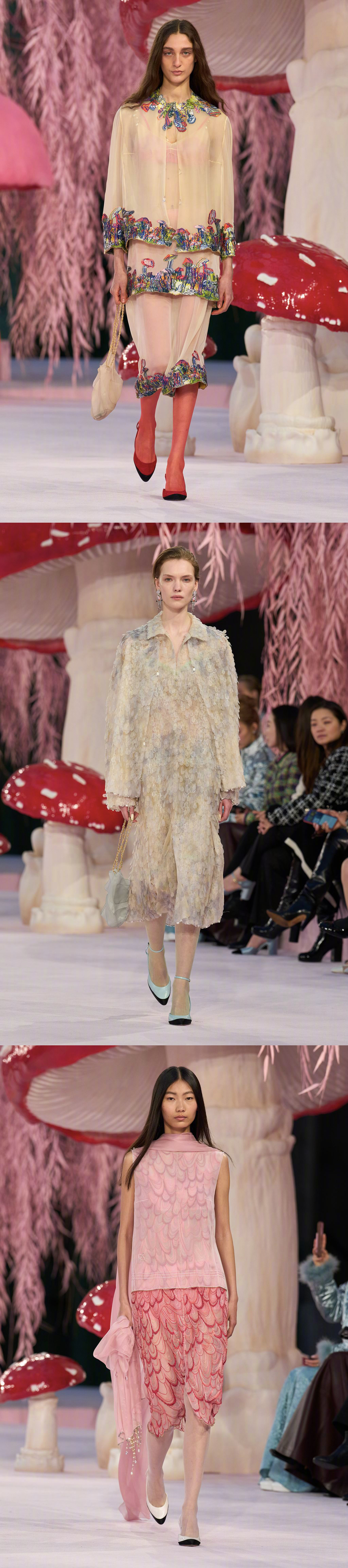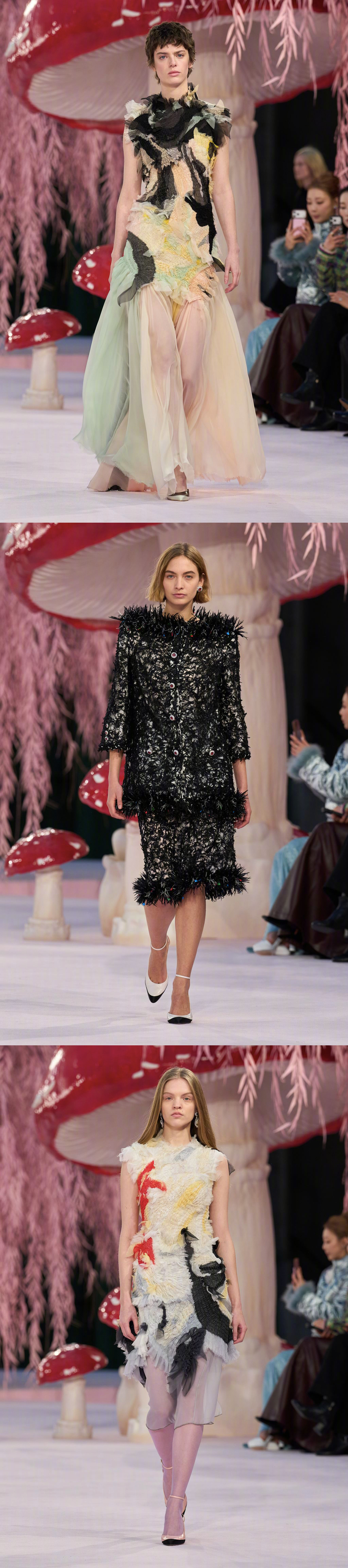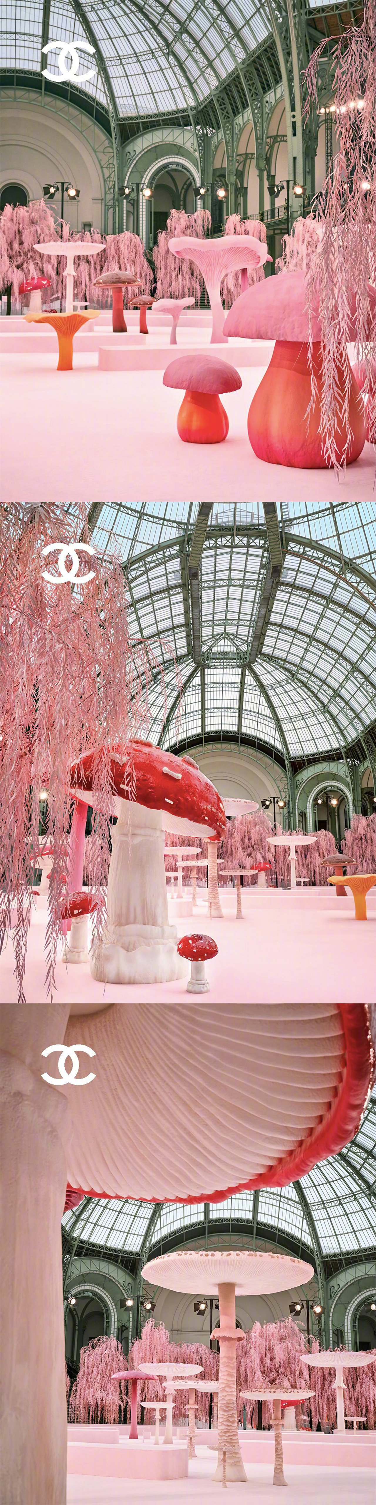 CHANEL S/S 2026 Haute Couture 🍄🐿️🌸 巴黎高定时装周 创意总监Matthieu Blazy 的第一个香奈儿高定系列,将巴黎大皇宫打造成超现实童话世界,粉色森林里矗立巨型蘑菇,用童趣风格映衬高定格调,以轻盈的丝质透纱作品拉开序幕,飞鸟元素紧随其后,以缤纷色彩、各式廓形与多元设计呈现,诠释一个简单而充满愉悦的「自由」理念。香奈儿大秀大秀直击
