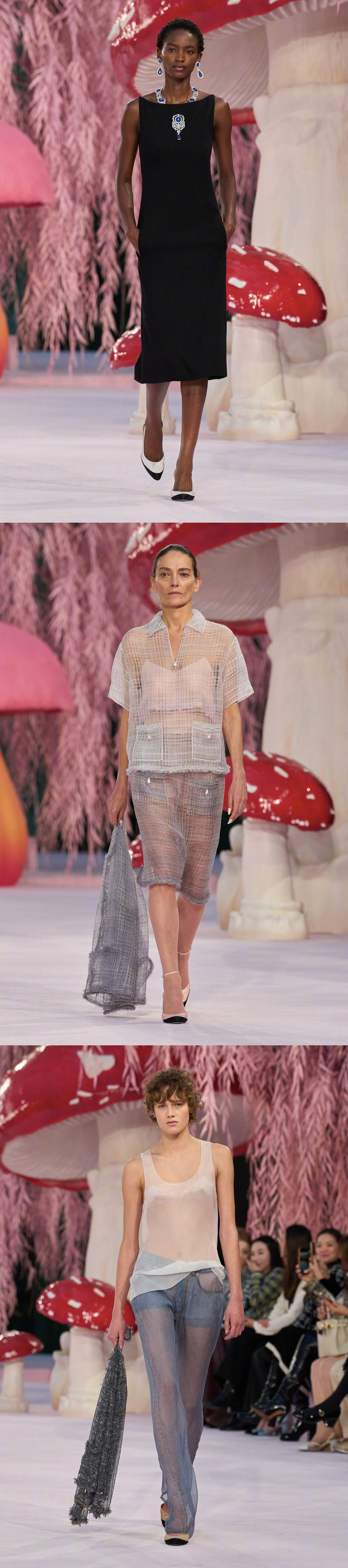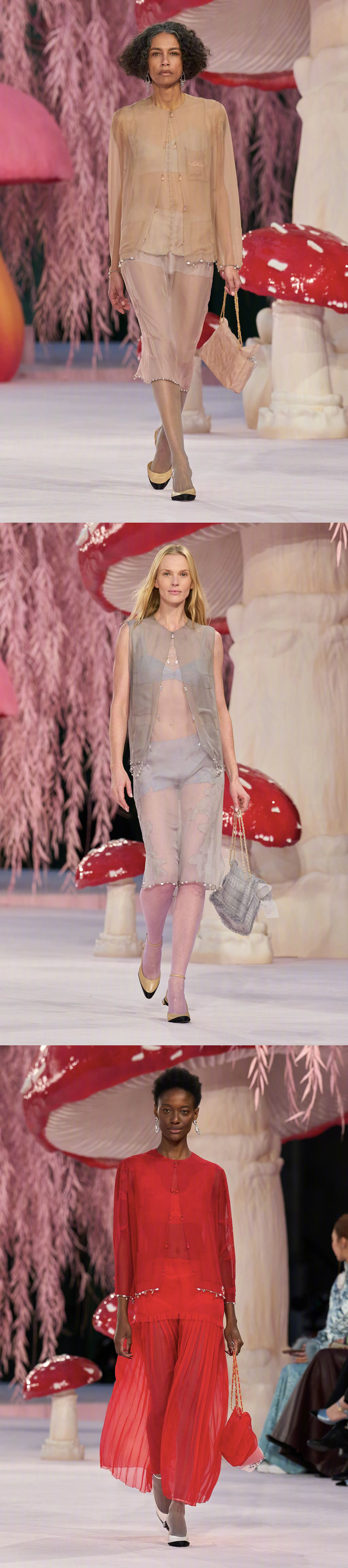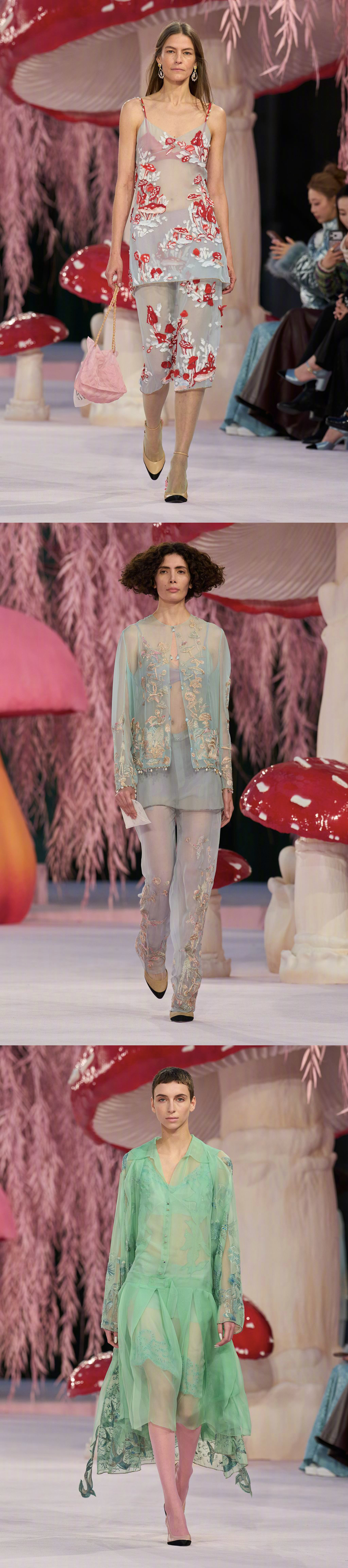 CHANEL S/S 2026 Haute Couture 🍄🐿️🌸 巴黎高定时装周 创意总监Matthieu Blazy 的第一个香奈儿高定系列,将巴黎大皇宫打造成超现实童话世界,粉色森林里矗立巨型蘑菇,用童趣风格映衬高定格调,以轻盈的丝质透纱作品拉开序幕,飞鸟元素紧随其后,以缤纷色彩、各式廓形与多元设计呈现,诠释一个简单而充满愉悦的「自由」理念。香奈儿大秀大秀直击
