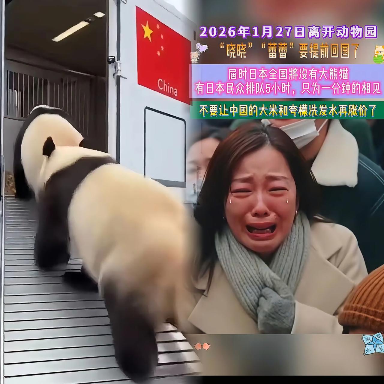 大熊猫回国,那场面太“燃”了! 1月27日,旅日大熊猫“晓晓”和“蕾蕾”踏上回国之旅。当贴有五星红旗的集装箱车停在上野动物园门口,它们竟主动爬进车里,那模样仿佛知道要回家,充满了兴奋与期待。一旁,日本民众依依不舍,不少人痛哭流涕,可大熊猫却头也不回,这反差着实有趣。大熊猫 旅外归国大熊猫 上野大熊猫 外国大熊猫 大熊猫出国记 大熊猫放归