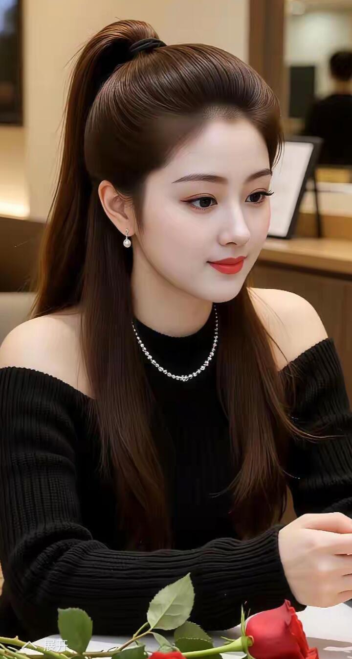 优雅黑裙搭配珍珠项链,玫瑰相伴的浪漫时光。