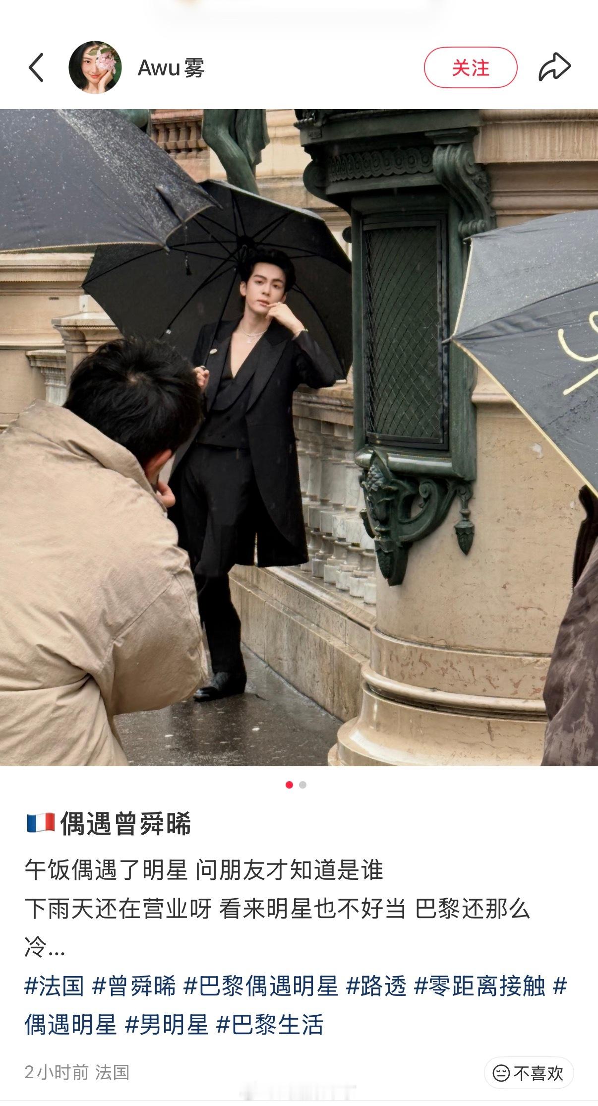 网友法国街头偶遇曾舜晞深V黑西装好有型脸部线条好优越