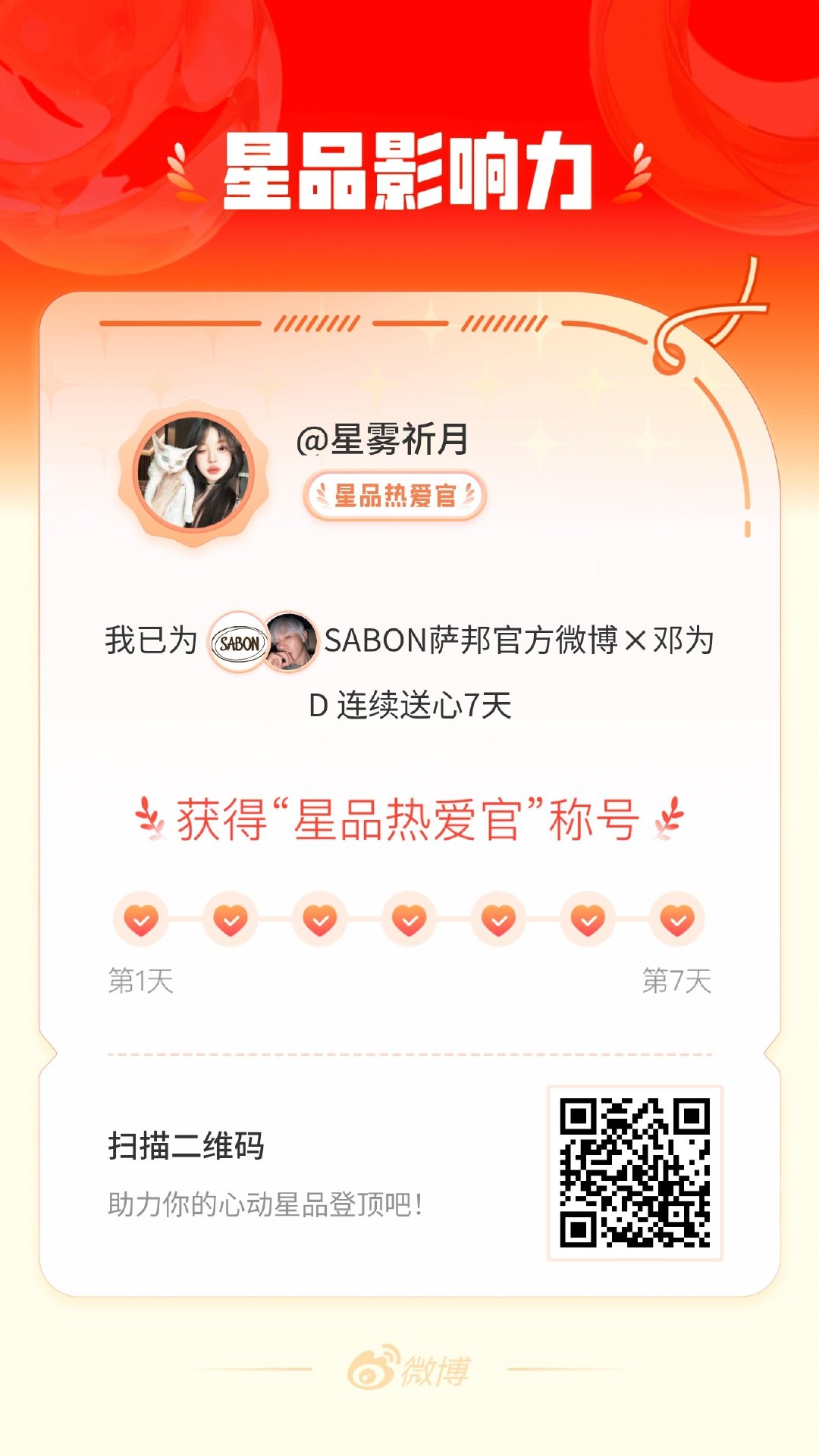 我在星品影响力上为X连续送心7天,获得“星品热爱官”称号!快来一起pick你
