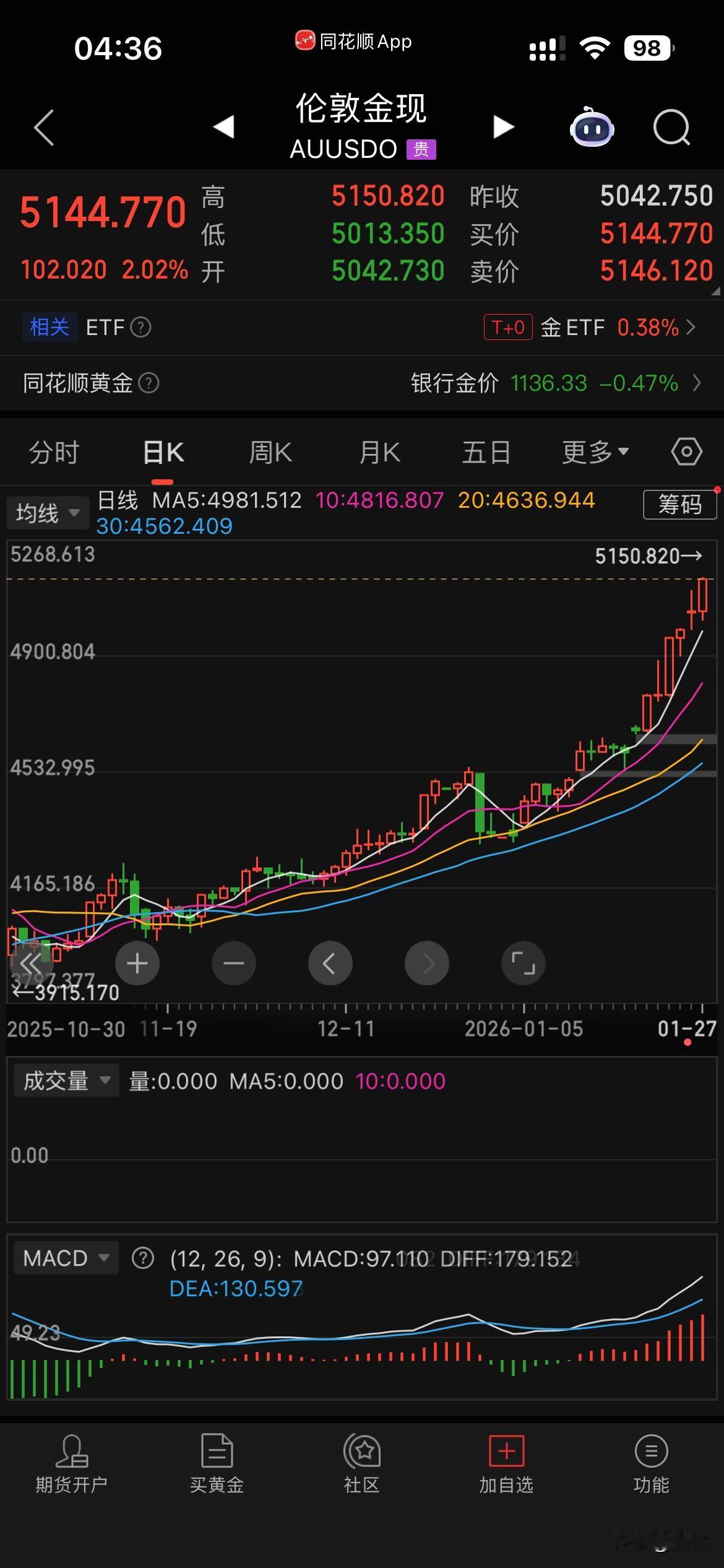 关于黄金价格2026年主流投资机构的预测,普遍预测2026年金价4500-5000美元左右,最高为高盛预测5400美元。 但是市场的避险情绪和投机者们的疯狂程度显然超出了投行机构们的预料,目前黄金现货价格已经超越预测来到5150美元/盎司。 影响黄金价格上涨的三要素目前为止根本没有反转的迹象: 1、各国央行仍然在加仓增持黄金,比如中国央行已经连续两年每月都在增持黄金储备; 2、全球化的瓦解和新的世界格局尚未确立,目前世界范围内多个地区火药味十足,随时都有爆发的可能性; 3、美元降息通道短期内不会中止,至少2026年会有两次降息预期。而与之相对应的是美联储的独立地位受到极大挑战,美联储主席即将更换之际,后续继任者是否会保持独立决策不得而知。