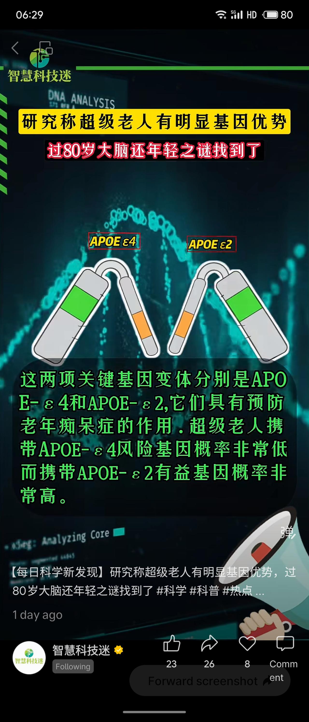 美国范德堡大学研究揭示了“超级老人”(年过80岁仍思维敏捷、记忆力非凡的群体)保持大脑年轻的遗传秘密。他们携带特定的关键基因变体:极少携带与阿尔茨海默病风险相关的APOE ε4基因,而高度携带具有保护作用的APOE ε2基因。这种基因组合能有效预防老年痴呆,并帮助维持异常年轻的心智状态。该研究基于迄今最大规模的超级老人样本,其成果不仅解释了超级老人的成因,也深化了对阿尔茨海默症遗传机制的理解。