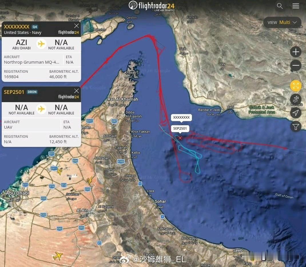 美国和伊朗的侦察无人机同时在阿曼湾上空活动,且飞行轨迹距离很近。 伊朗的互联网连接服务,开始大范围恢复。 有猜测:怕不是美国佬开的军用热点。这两天大概率就要开战了 最宝贝的电子战飞机都部署了,不可能这时候TACO。