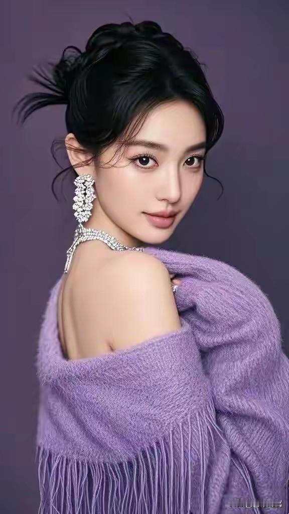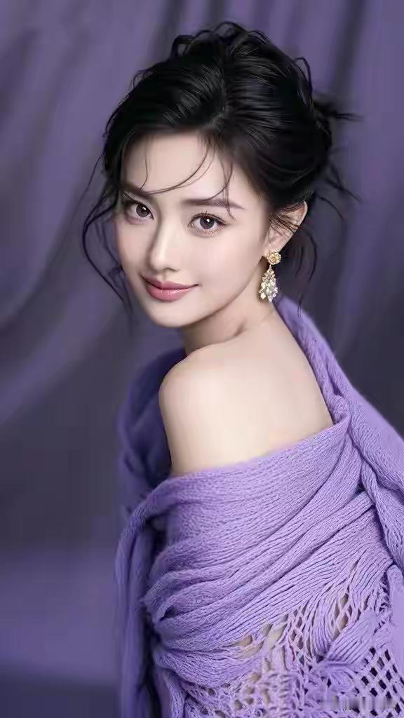 一袭紫装衬娇容, 眼若秋水映繁星。 闭月羞花千般韵, 风情万种待何人。