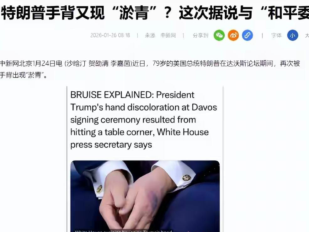 特朗普左手背上的大片瘀伤被全球镜头定格。这不是偶然——过去一年,他的右手几乎没断