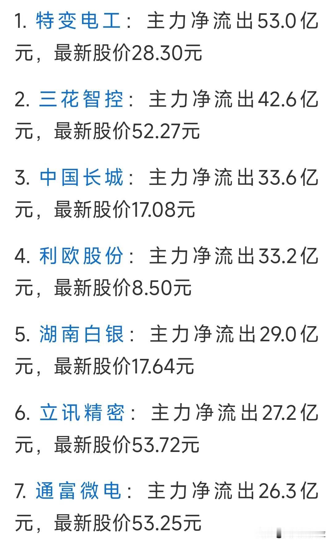前3个交易日主力资金大幅出逃名单复盘!净流出前10名汇总…… 关注“刘姥姥”,精彩分享真不少(麻烦亲们:点赞,收藏,分享)。 特别提醒:本文涉及内容及个股,仅供交流与参考,不是荐股,不得以此作为买卖依据,盈亏自负。