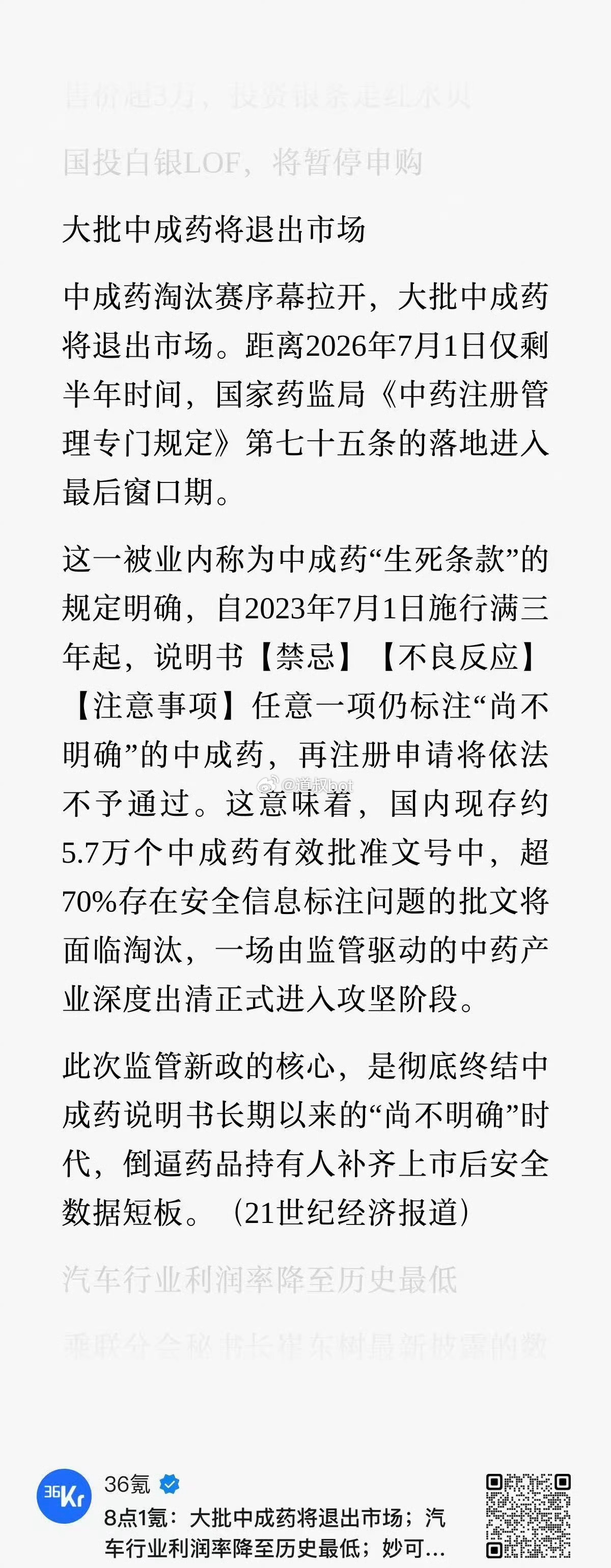 接下来是不是又要开始抢购各种中成药了?毕竟监管新规要淘汰70%的中成药。