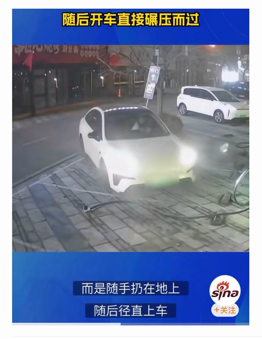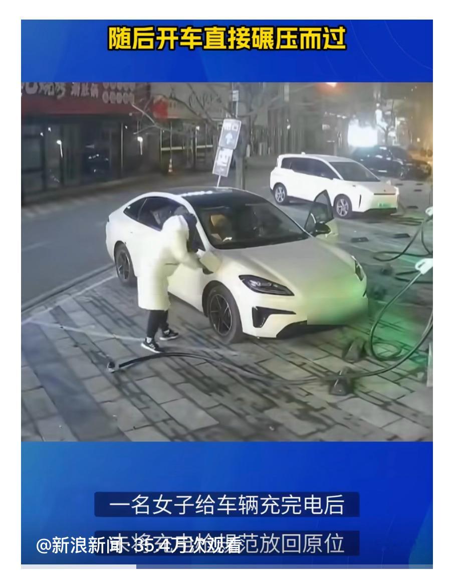 女子充完电扔充电枪开车碾压充完电随手就扔地上了,简直太自然了!看来不是第一次!