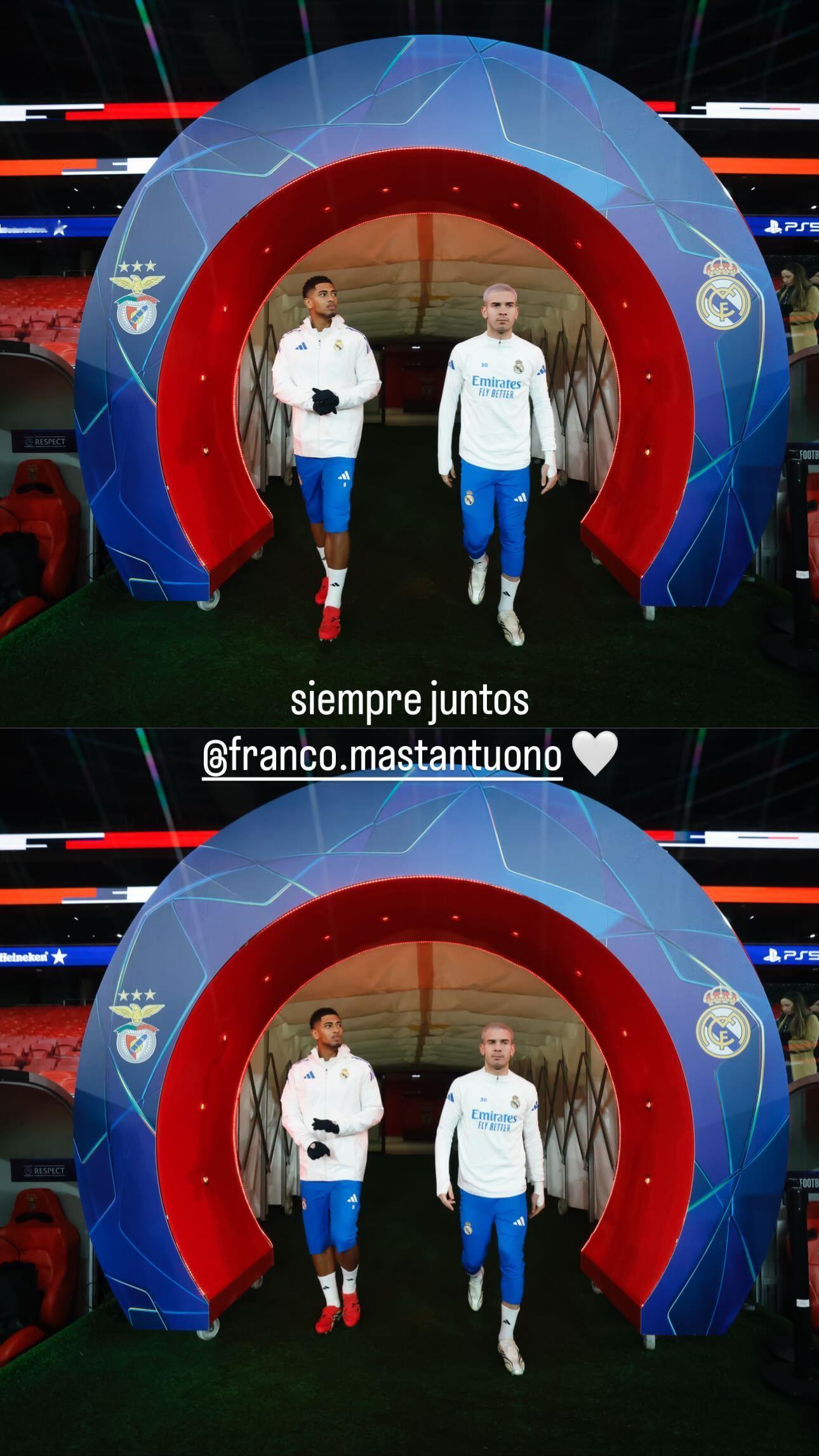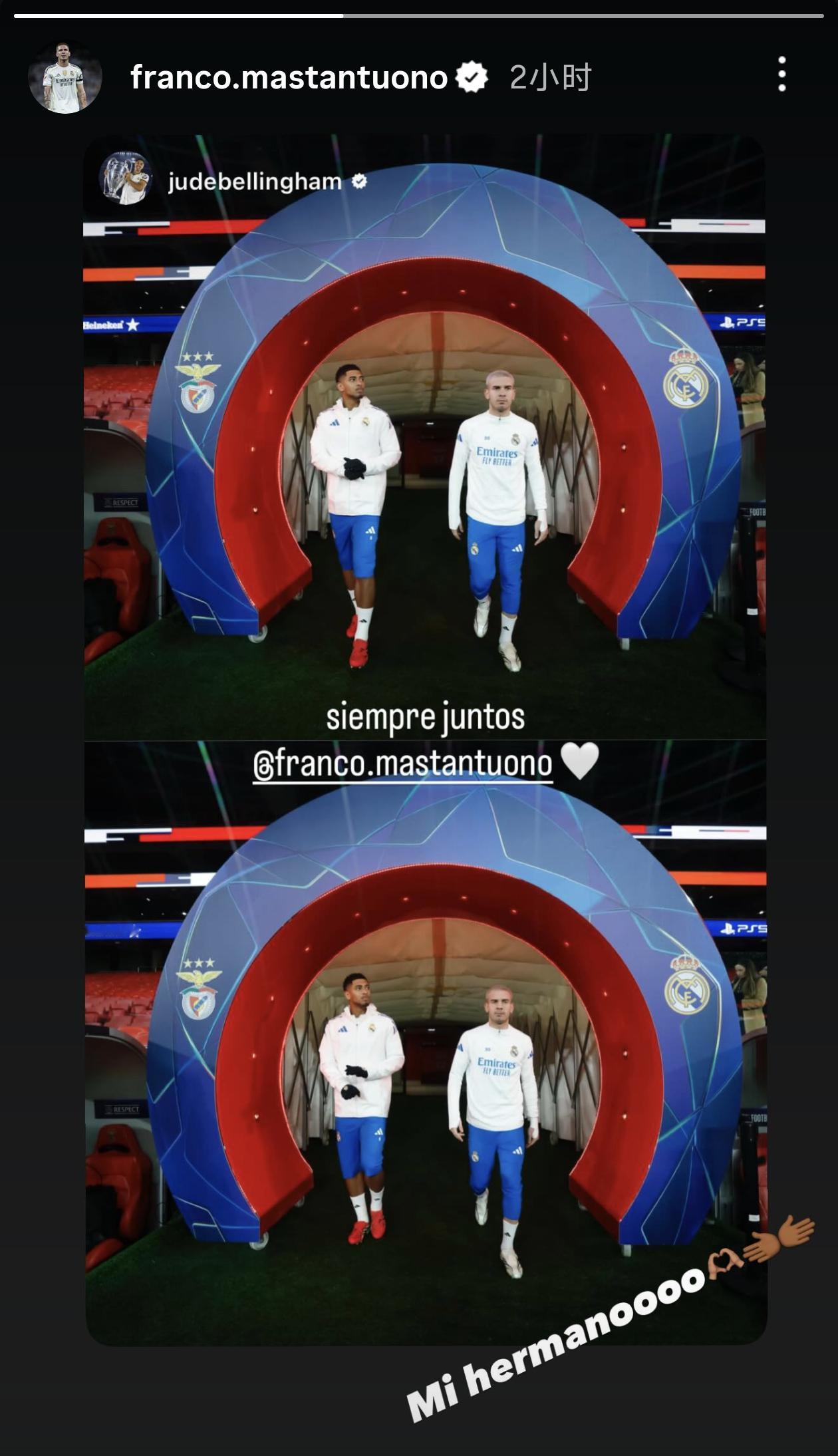 受伤那天马斯坦托诺发了一张快拍,随后秒删了内容是:加油,我的朋友🤍💪🏽皇马
