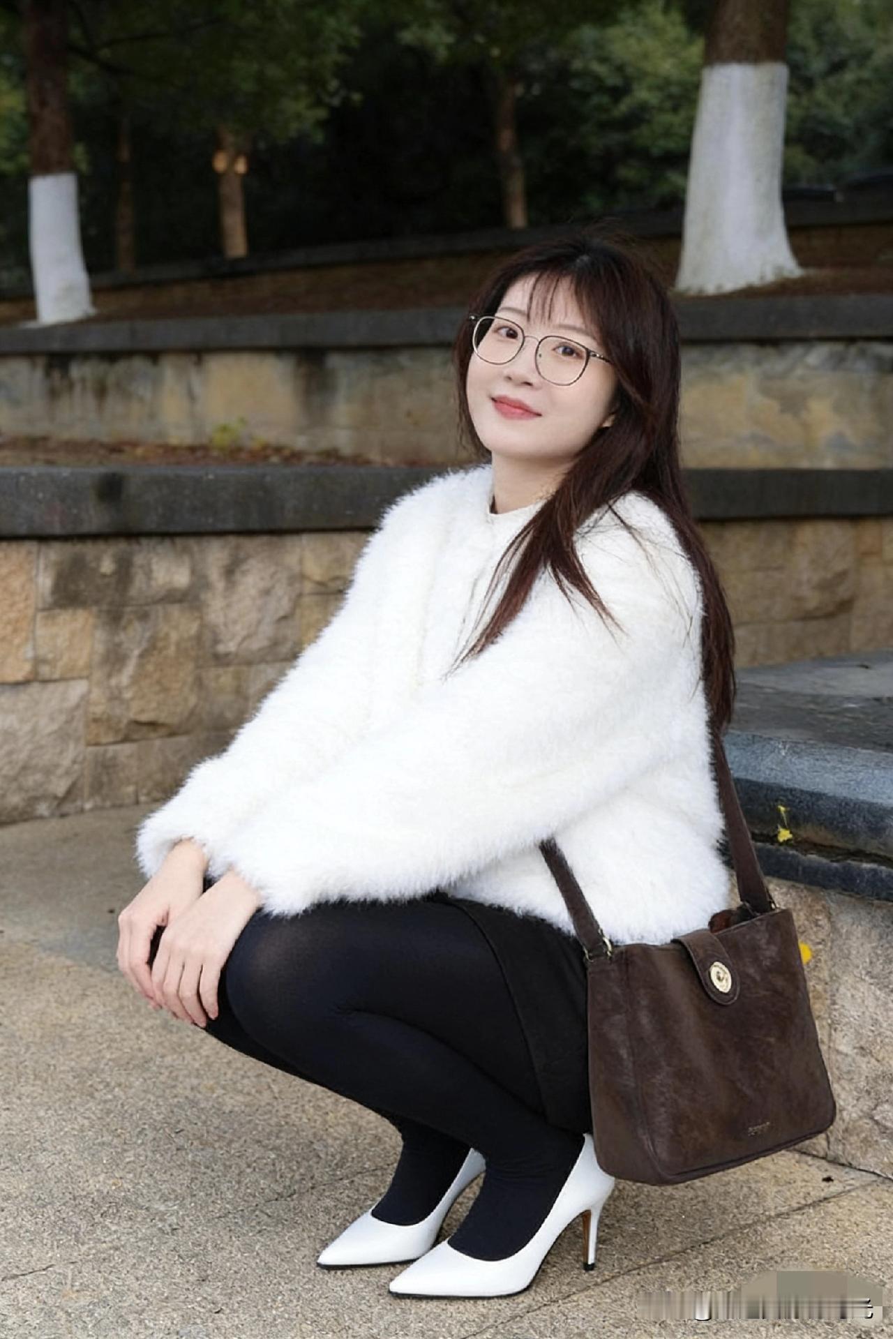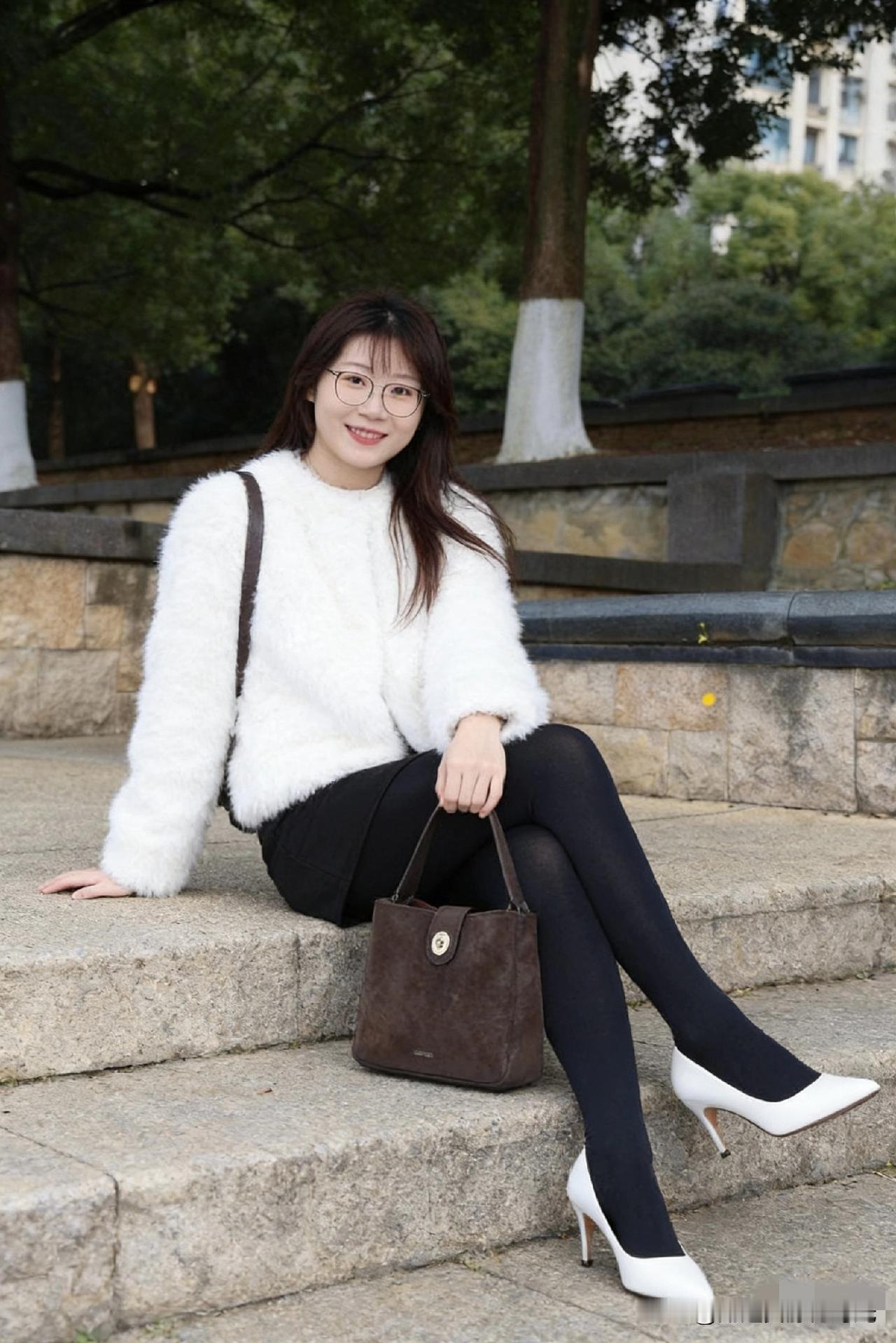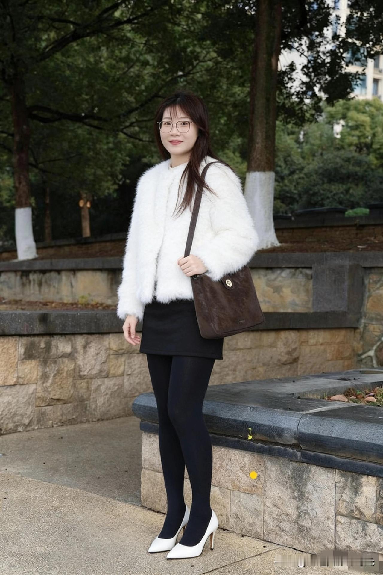 冬日穿搭指南:白色毛绒外套+黑色紧身裤+白色高跟鞋,温暖又时尚!