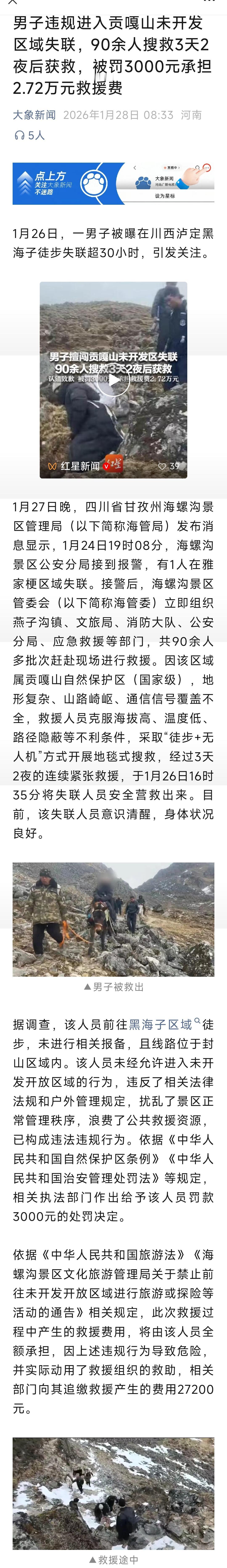 精确到百位,相关部门可以说很善良委婉了,2.7万救1条命,这么多人参与搜索救援,当事人值了