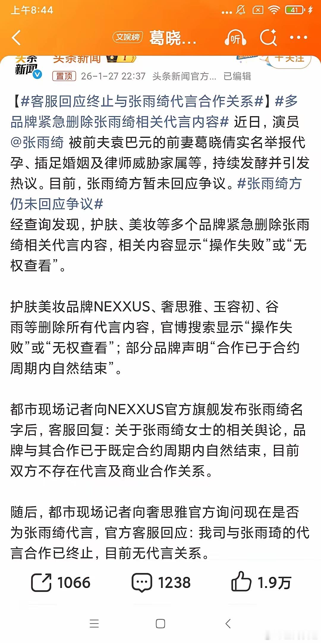 张雨绮辽宁春晚掉了,代言掉了,资源全掉了,她还一言不发?明星掉代言是小,但是违约金是要赔的呀,这么多代言,得赔多少钱,她都不出来回应?这还是那个敢掴汪小菲巴掌的女星,是那个违约也能和周星驰相处很好的女星吗?张雨绮 袁巴元张雨绮一言不发张雨绮