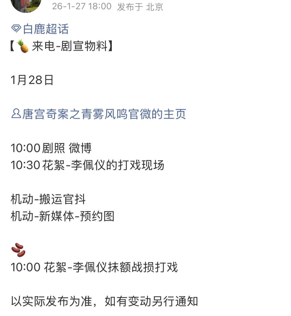 不敢想今日物料多美味嘿嘿嘿 还有一个小时看我家李佩仪大人打戏omg!!战损➕抹额➕白鹿绝了 这个唐宫奇案大事很妙🤚🏻🫘10:00 花絮-李佩仪抹额战损打戏Vb 10:30花絮-李佩仪的打戏现场