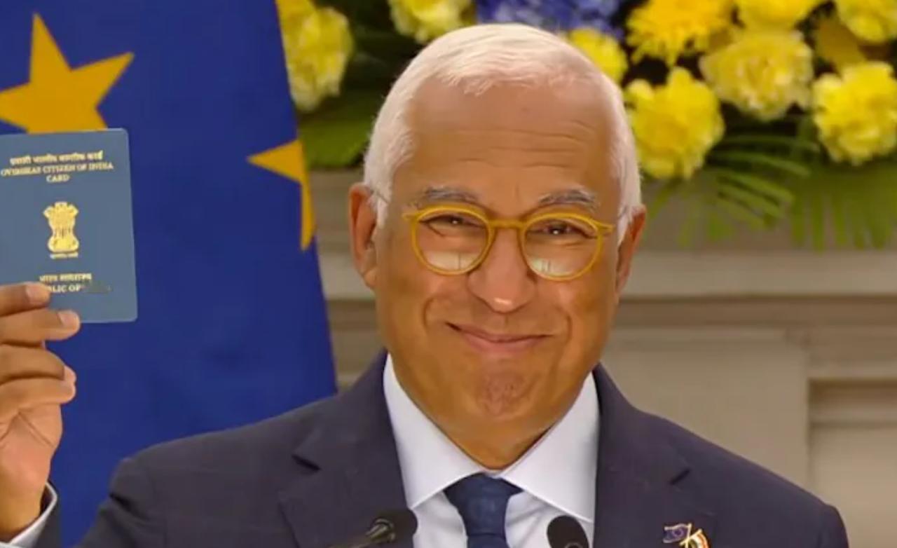 欧盟掌门人当众亮出一张卡片,上面赫然写着"海外印度公民"。科斯塔站在新德里的发布