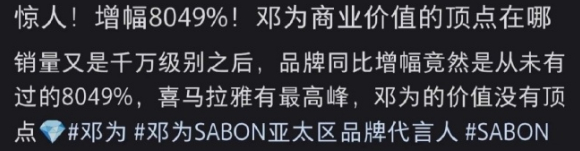 多家媒体报道邓为代言的产品,销售量激增的消息对邓为来讲,绝对是一件好事,以后找他的商家肯定会很多,毕竟这么牛的销量,谁不眼红啊