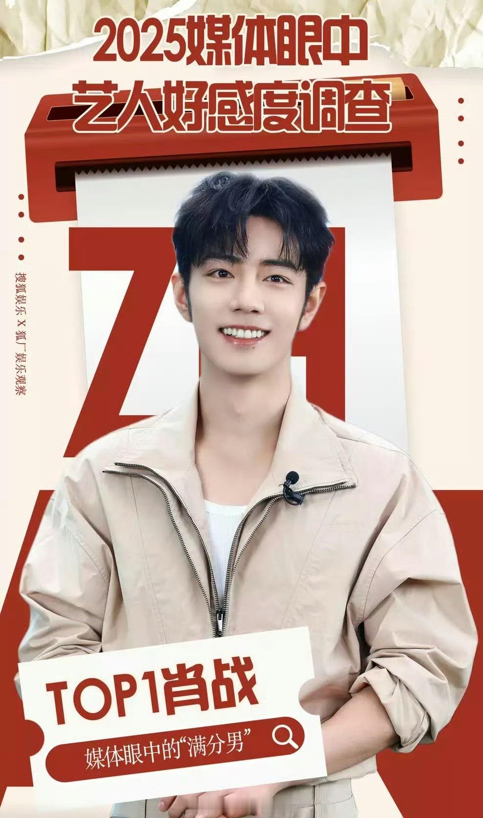 2025媒体好感艺人top1肖战“有思考有输出、认真做演员很有规划、对突发事件也都很尊重和包容、有礼貌很真诚言之有物”