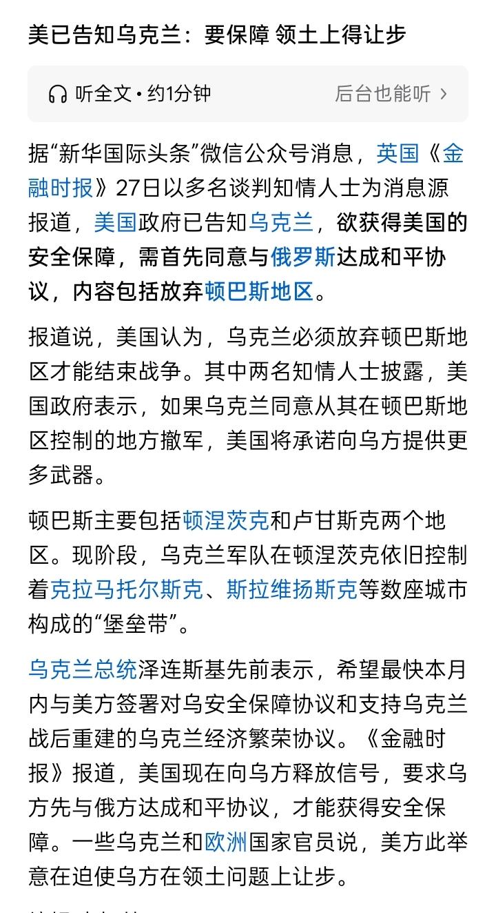 开它的狗屁玩笑! 安全保障的前提是让乌克兰放弃顿巴斯地区,这还能够叫安全保障吗?领土没了,还保障什么! 如果乌克兰愿意割让领土,早就割让过了,还用得上、或需要什么狗屁安全保障吗?即便是欺负人,好像也没有这么欺负的吧。 估计乌克兰哪怕就是没有这个安全保障,也不会签署什么停战协议,从而放弃顿巴斯地区,因为那关系着国家领土和主权完整的头等大事,而且,目前乌克兰法律,似乎也没有授权某个人有签署放弃本国领土的协议的权力和机制。 最大的原因,估计可能是某些人在为战争造势,吓唬乌克兰人,或者吓唬泽连斯基。