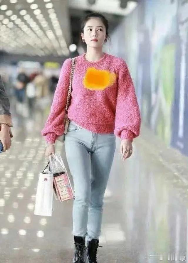 总觉得白鹿不太适合紧身裤,多数牛仔裤她穿起来都很难穿出美感。
