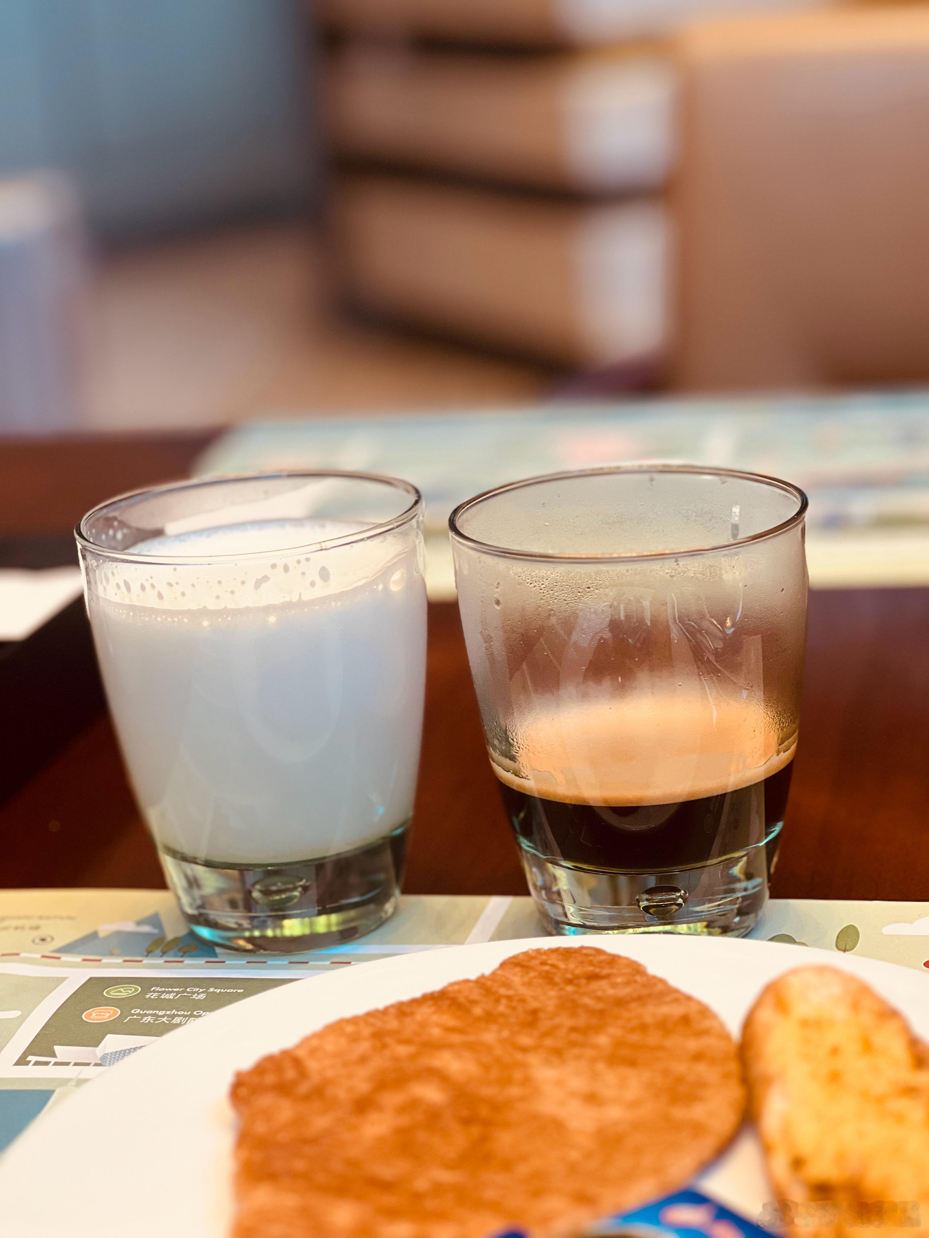 酒店咖啡机可以手动打奶泡,虽没拉花缸,弄杯卡布奇诺还是可以的。隔空干啡 广州·广州朗豪酒店