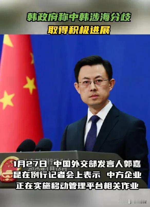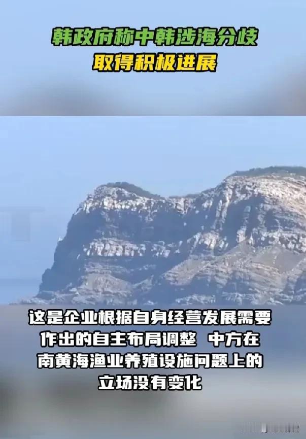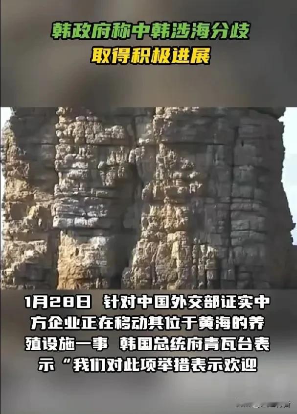 青瓦台声称涉海分歧取得积极进展。 据《今日俄罗斯》报道,1月28日,针对中国外交部证实中方企业正在移动其位于黄海的养殖设施一事,韩国总统府青瓦台表示,“我们对此项举措表示欢迎,这是有意义的进展”,并补充称韩政府寻求将其西部海域发展成为“和平共处、共同繁荣的海洋”。 1月27日,中国外交部发言人郭嘉昆在例行记者会上表示,中方企业正在实施移动管理平台相关作业,这是企业根据自身经营发展需要作出的自主布局调整。中方在南黄海渔业养殖设施问题上的立场没有变化。中韩是海上邻国,双方一直就有关涉海问题保持密切沟通,推动妥善管控分歧,促进互利合作。 据了解,中韩在黄海并没有领土纠纷,但存在海域划界与海洋权益争议,核心是围绕苏岩礁及专属经济区/大陆架划界原则上存在差异。 苏岩礁是黄海海底暗礁(水下约4.6-5.4米),非领土,不能主张主权,也不能作为划界基点,中韩对此有共识。韩国从2000年起在苏岩礁建“离於岛”海洋科学基地,单方面主张相关海域权益,中方坚决反对其非法活动并维护主权权益。中方坚持公平原则+大陆架自然延伸,韩方主张等距离中间线,致黄海南部约6万平方公里权益重叠区,双方持续推进划界谈判。