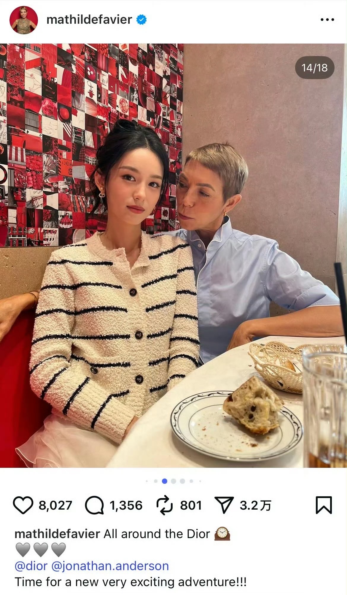 迪奥女郎就这样受宠💅迪奥总监点赞周也ins迪奥总监ins发了周也